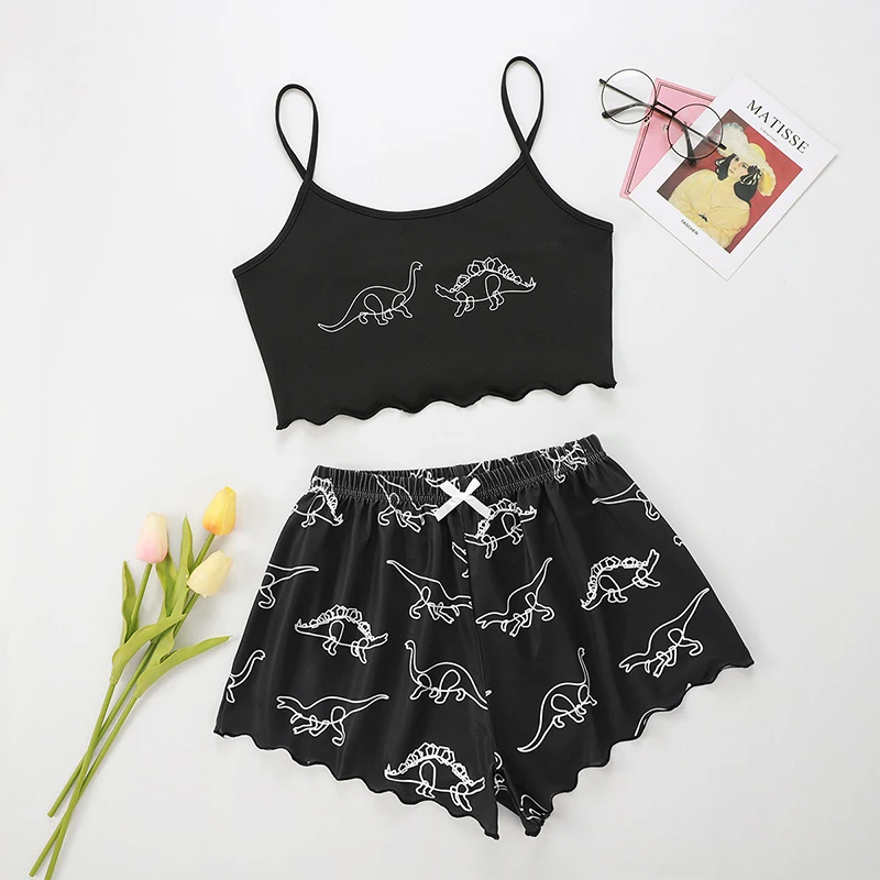 Пижамный комплект с принтом дракона, летняя пикантная Пижама, женские пижамы большого размера, домашний костюм из 2 предметов, домашняя одежда, нижнее белье, пижамы, ночная рубашка