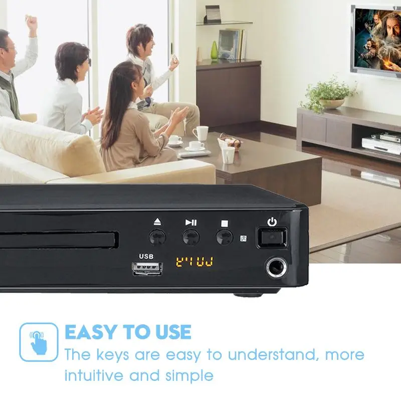 DVD-плеер HD 1080P с AV-кабелем, медиа для ТВ, музыки, развлечения с объемным звуком 5,1, USB, совместим со всеми регионами, для домашнего кино