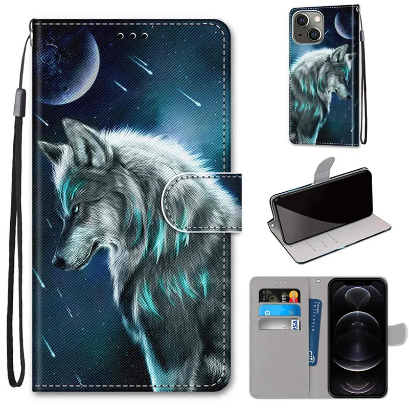 Colorful Painting Cat Tiger Dog Wolf Animal Leather Case Phone Bag