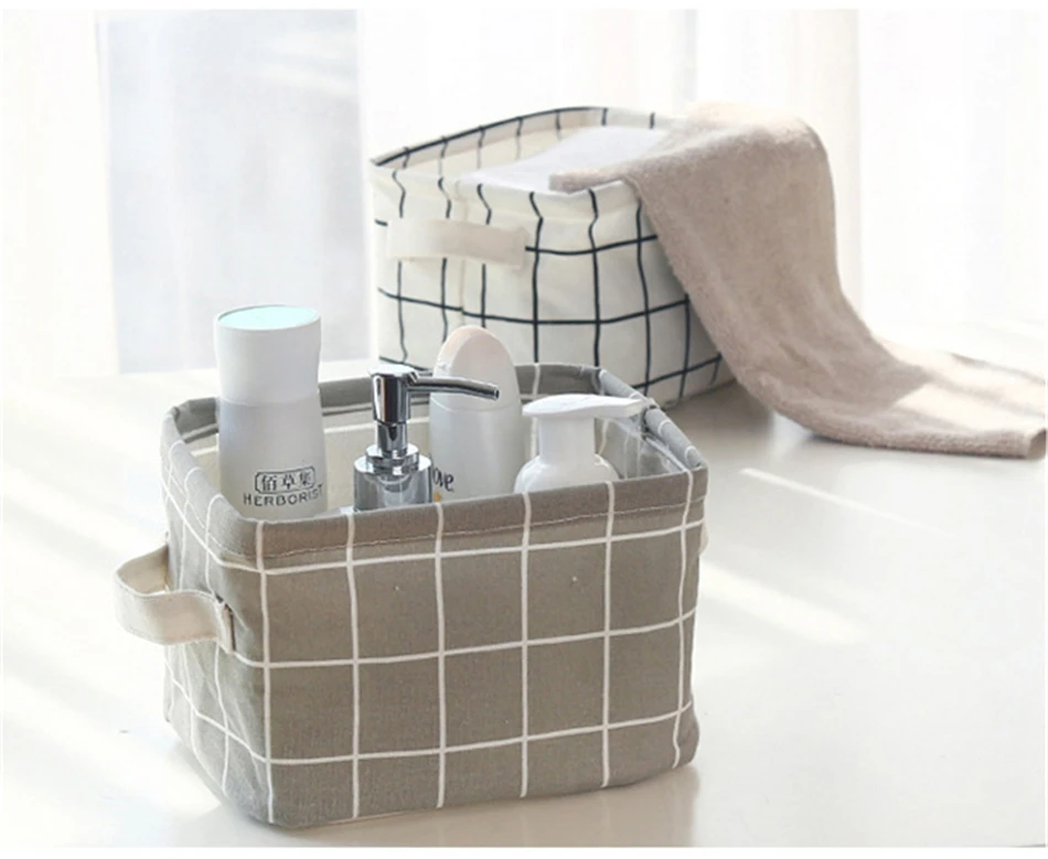 Льняная настольная корзина для хранения, складная коробка для хране...