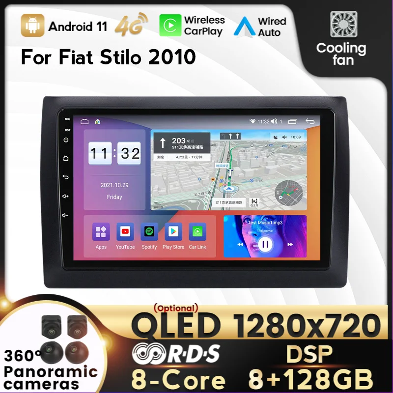 1280x720 7862C 8 ГБ + 128 Гб большой экран Andorid 11 все в одном автомобильный мультимедийный плеер навигация для FIAT Stilo 2010 комплект крепления приборной панели