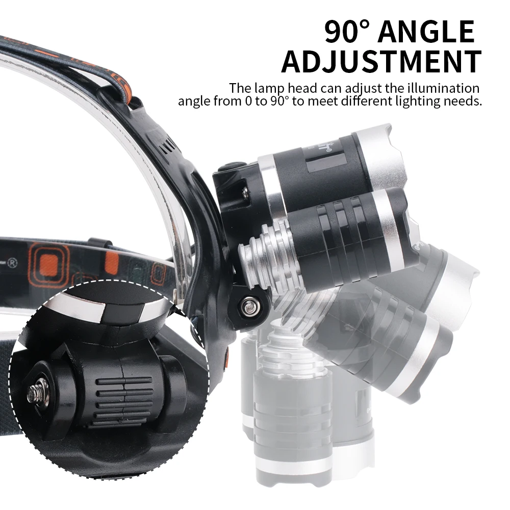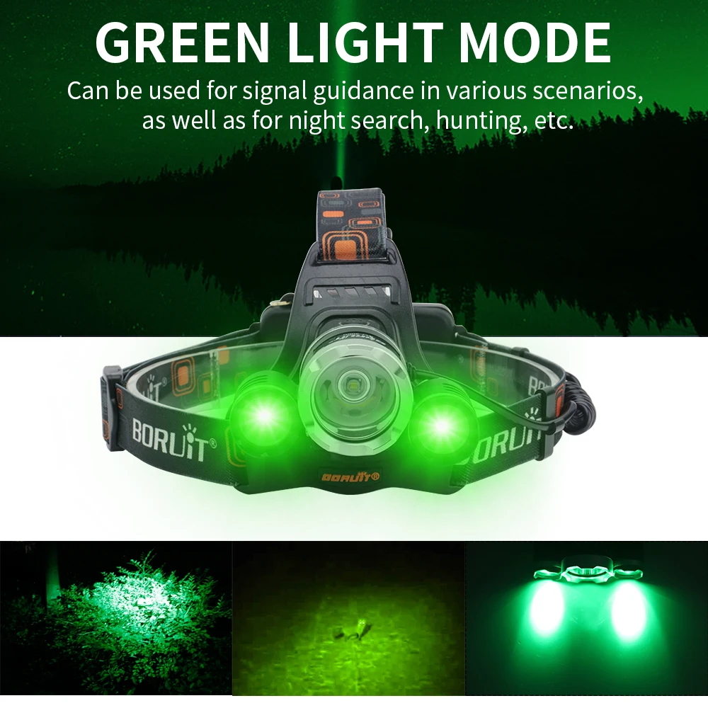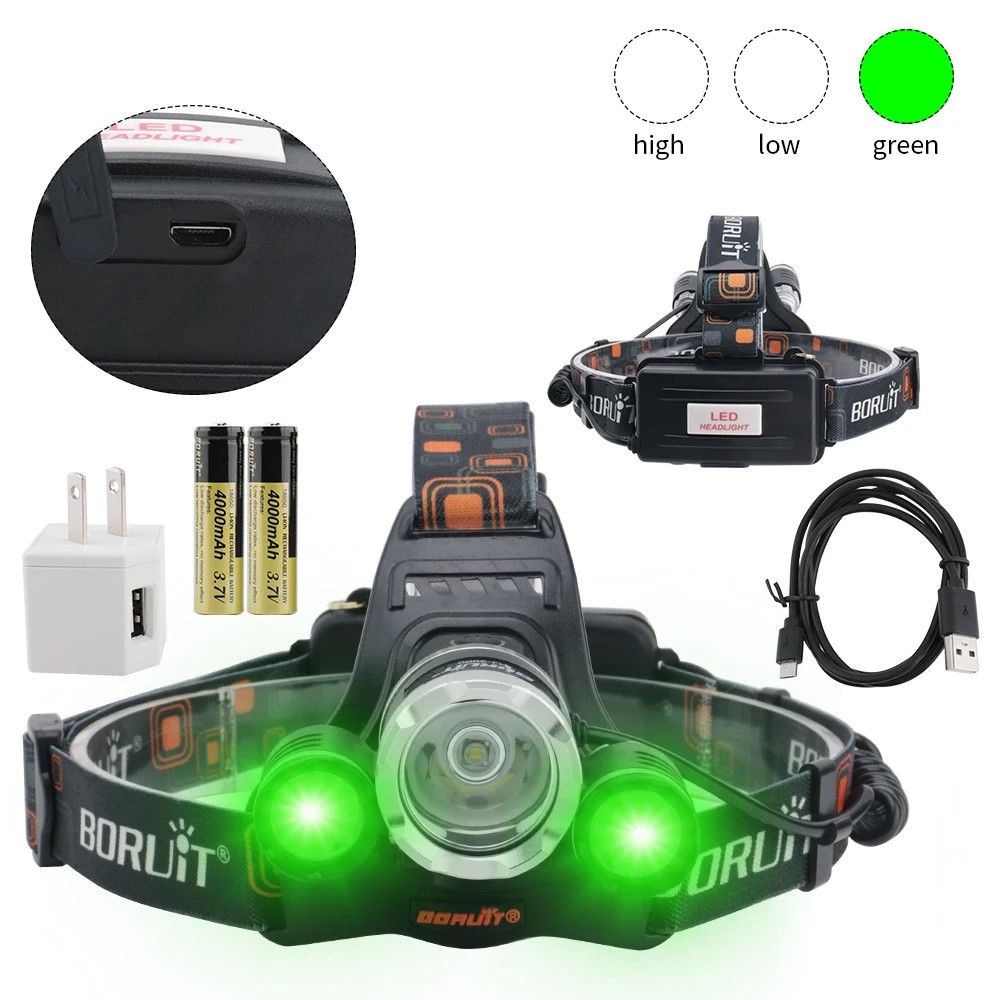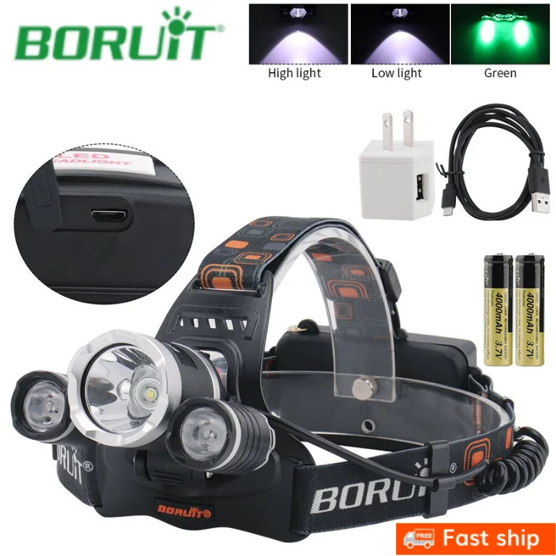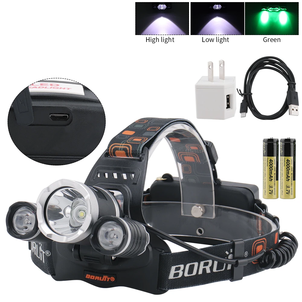 BORUIT RJ-3000 Lums светодиодный налобный фонарь, светильник с 2*18650 батареей, фонасветильник USB T6 Light Beads IPX5 Водонепроницаемый налобный фонарь