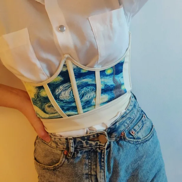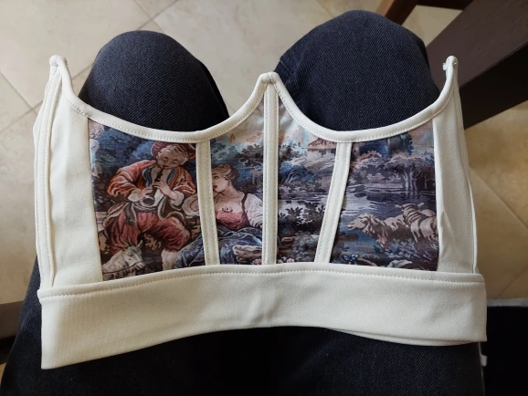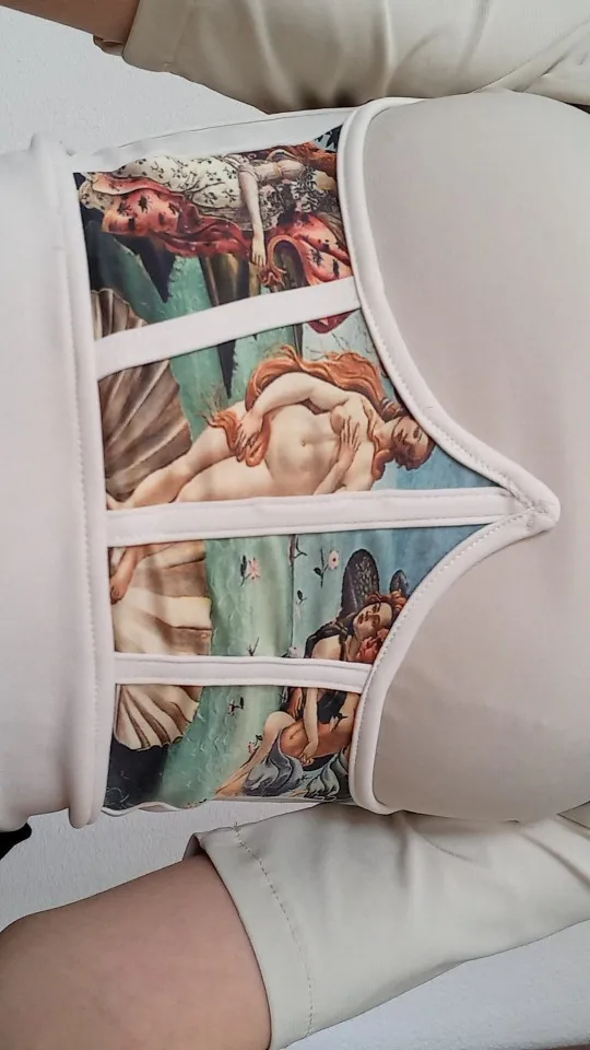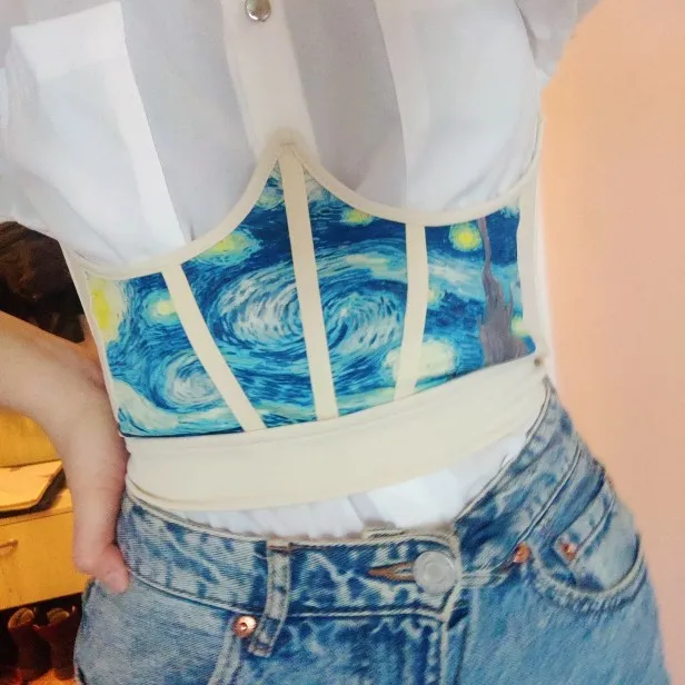 Корсет виявився більше перламутрового кольору ніж білим, але це не заважає виглядати йому чудово. Приємний до тіла, регулювати його в талії не можна, але коли носиш його, то він не злітає. Цікавий малюнок. З продавцем не спілкувалась. Рекомендую!