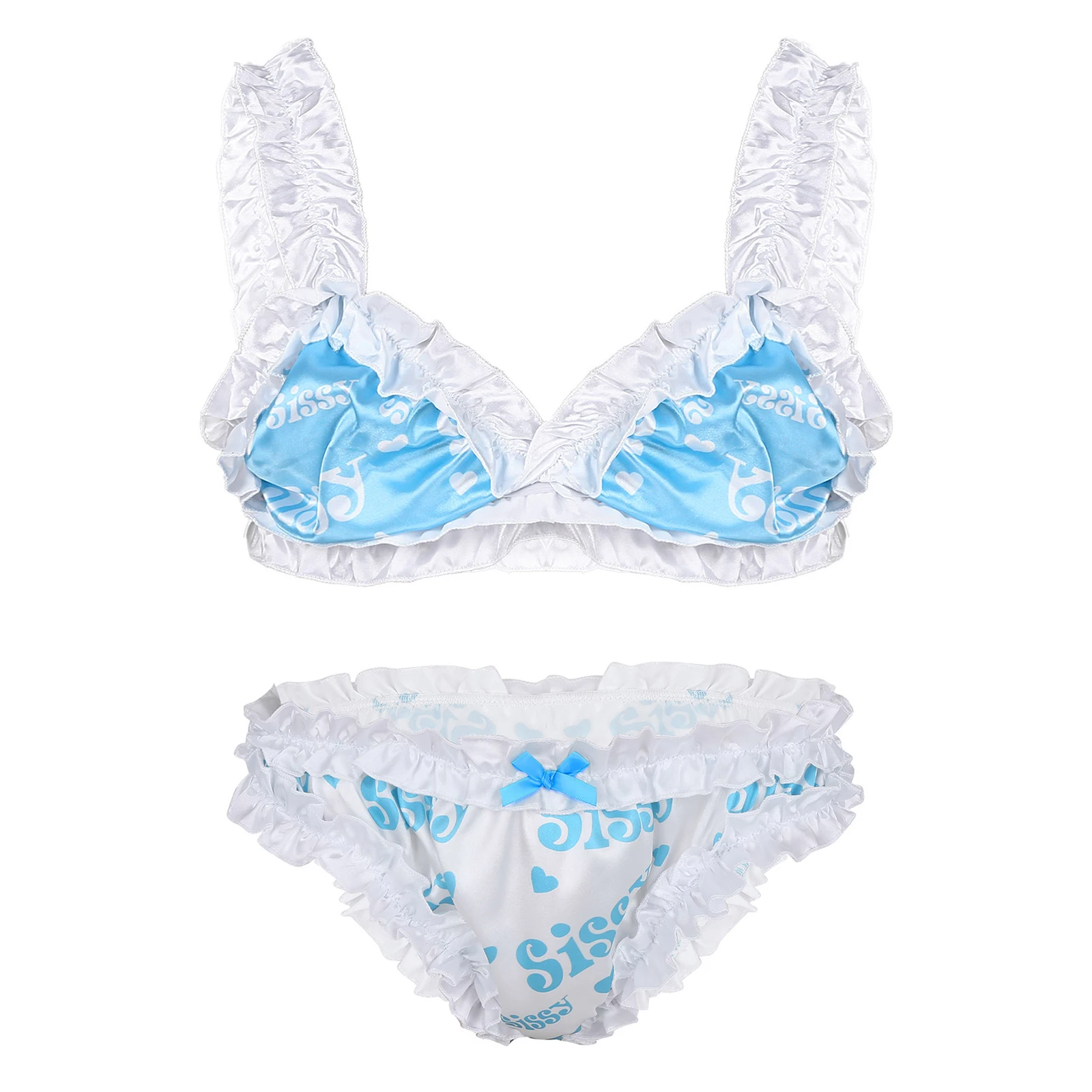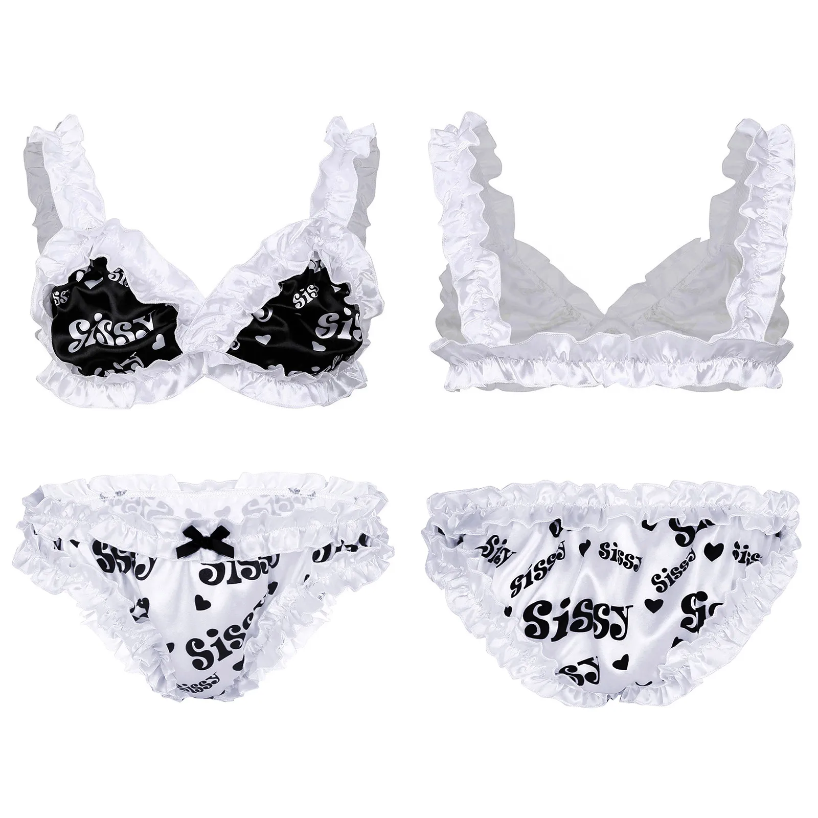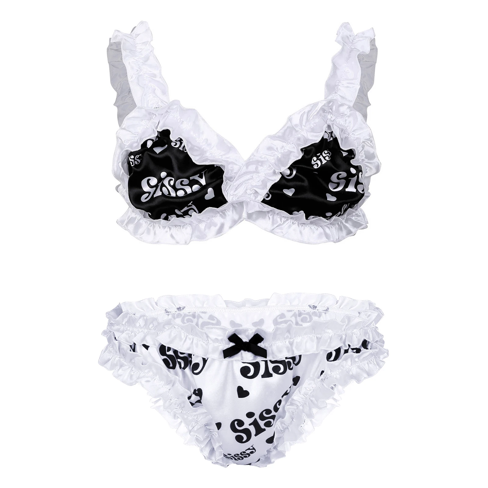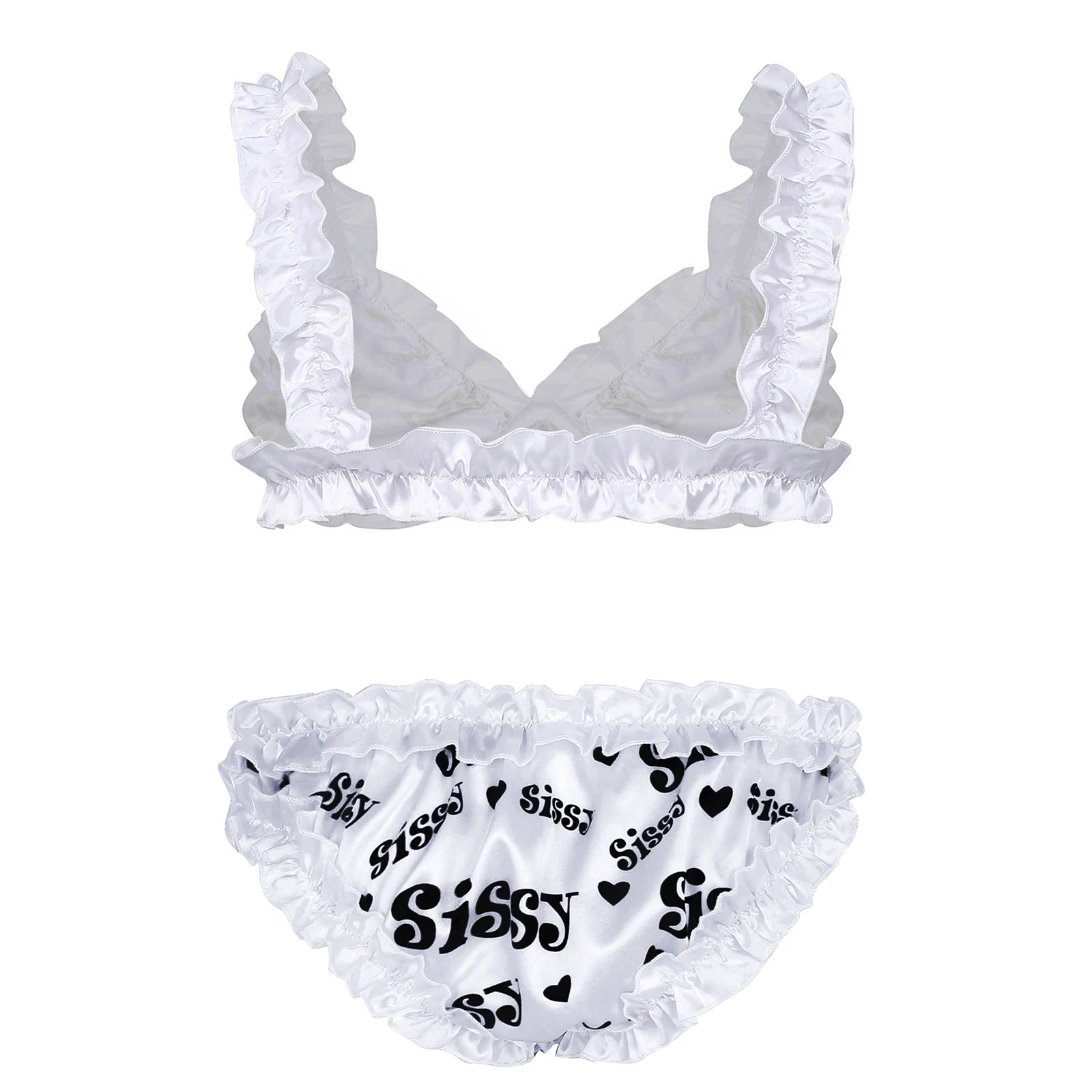 Особенности:Нижнее белье Sissy без косточек без подкладки бюстгальтер Топ и трусы.Топ с бюстгальтером с буквенным принтом; Очень легкая и гладкая ткань с оборками по подолу; Мягкая и удобная в носке.Трусы изготовлены из комфортного эластичного пояса, с очень оборками и оборками, с высоким вырезом.Идеально подходит для специальной ночи, Дня Святого Валентина, подарков для медового месяца, свадебной ночи, свадебных подарков.Пожалуйста, проверьте размер перед покупкой, ручная/машинная стирка в холодной воде.