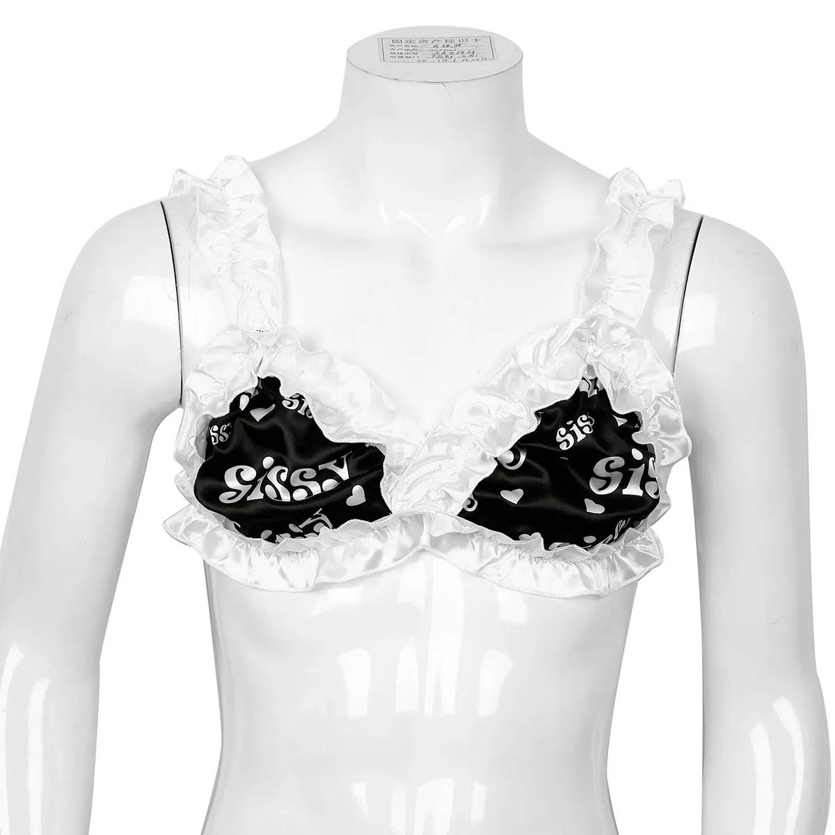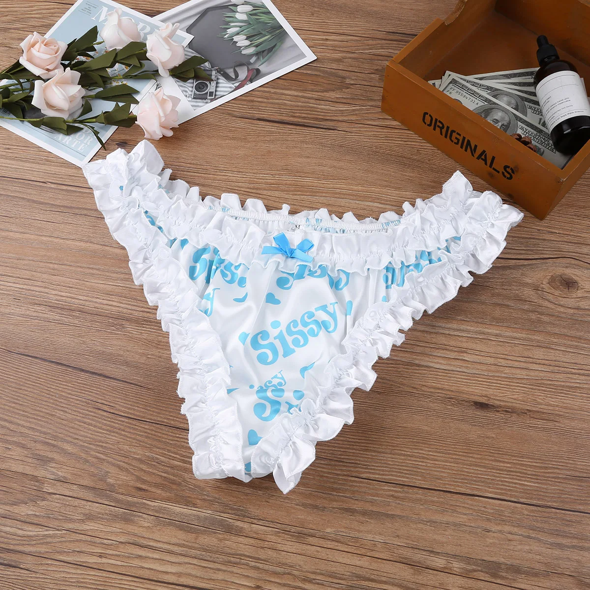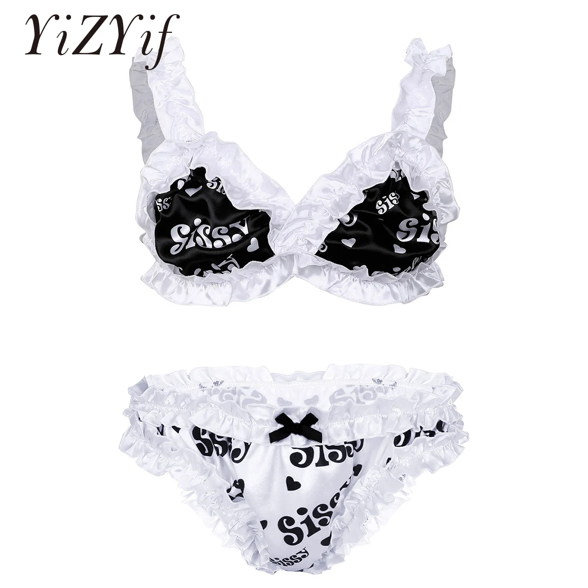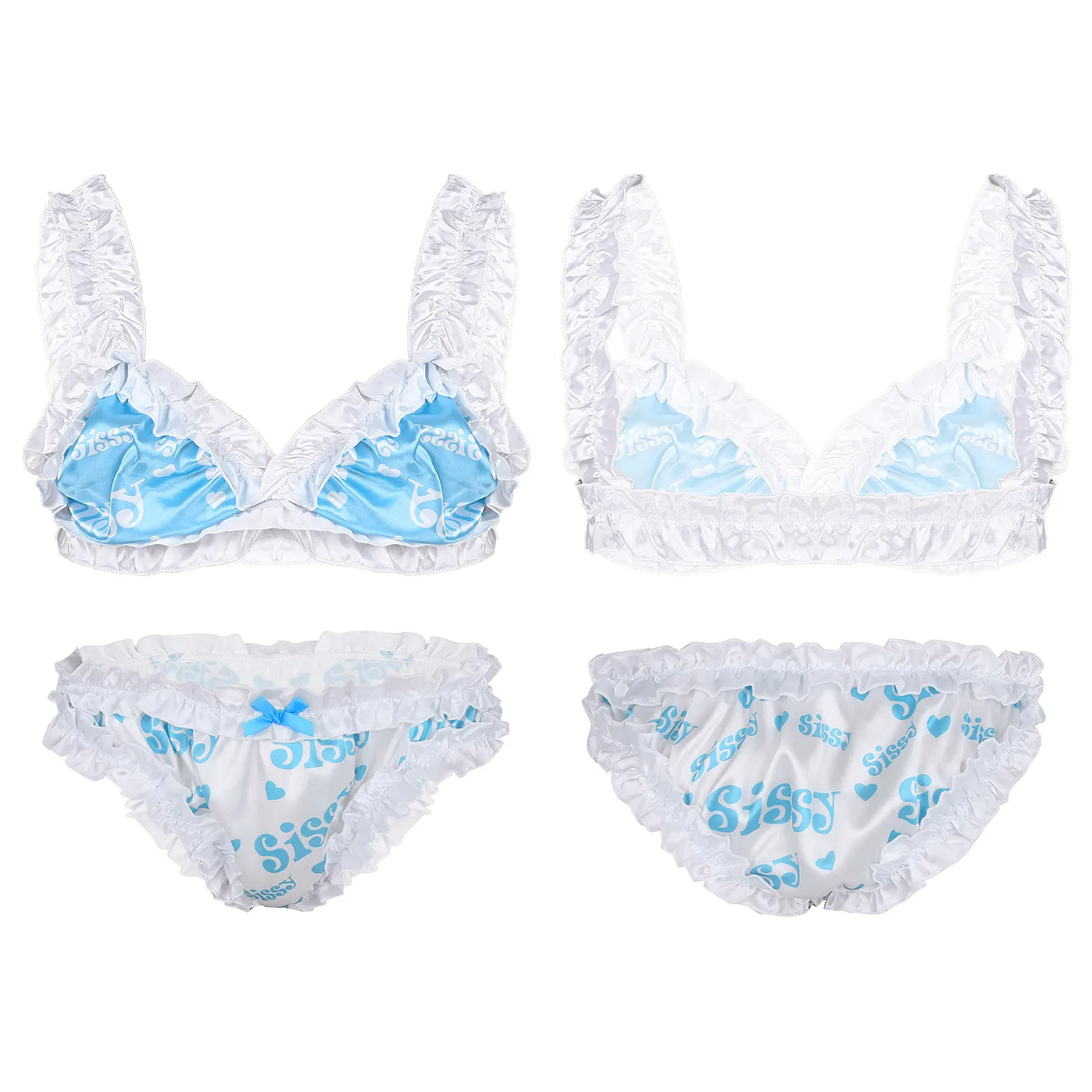 Особенности:Нижнее белье Sissy без косточек без подкладки бюстгальтер Топ и трусы.Топ с бюстгальтером с буквенным принтом; Очень легкая и гладкая ткань с оборками по подолу; Мягкая и удобная в носке.Трусы изготовлены из комфортного эластичного пояса, с очень оборками и оборками, с высоким вырезом.Идеально подходит для специальной ночи, Дня Святого Валентина, подарков для медового месяца, свадебной ночи, свадебных подарков.Пожалуйста, проверьте размер перед покупкой, ручная/машинная стирка в холодной воде.
