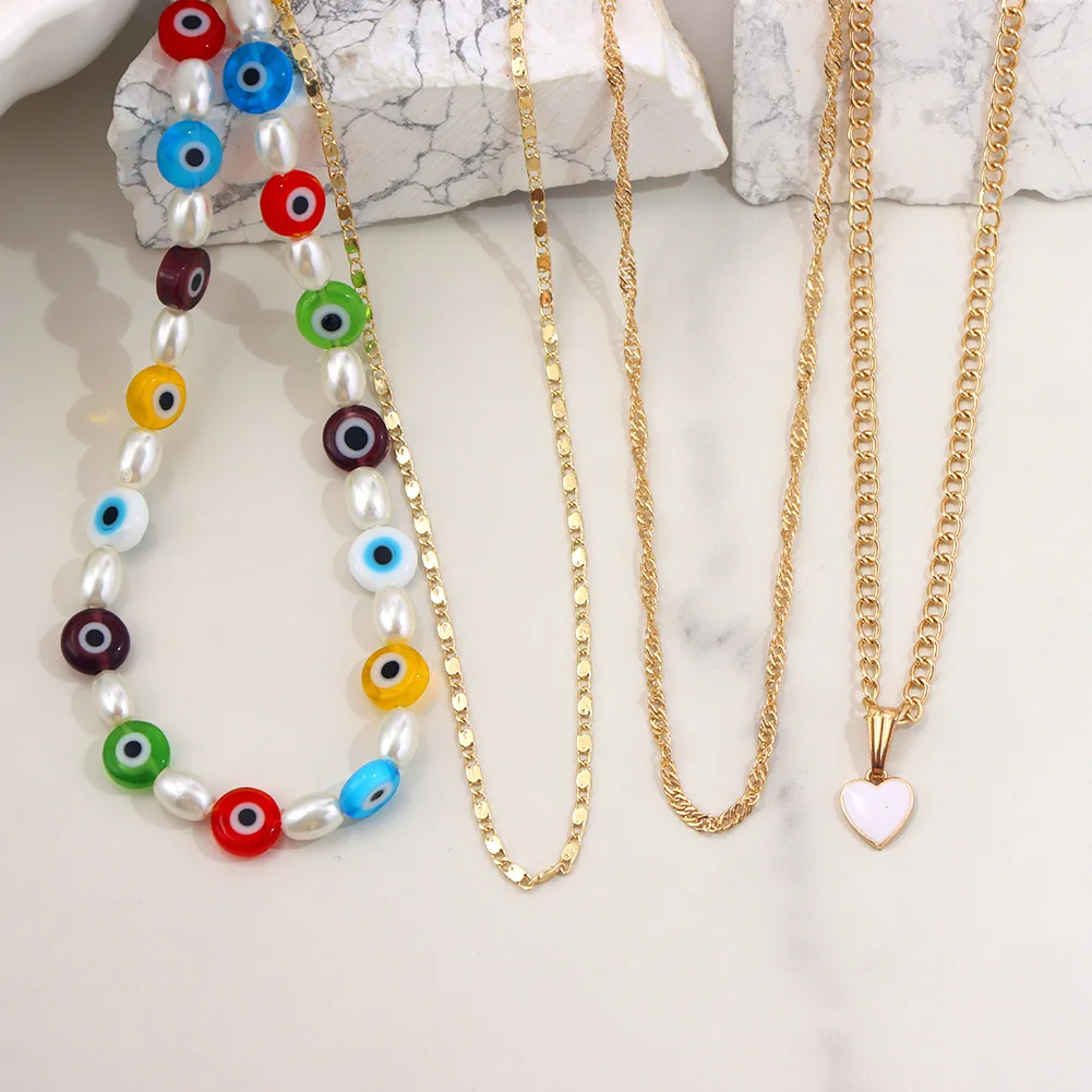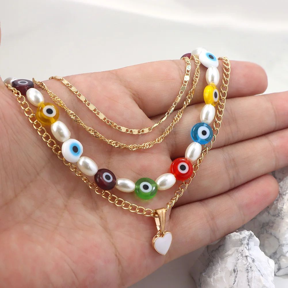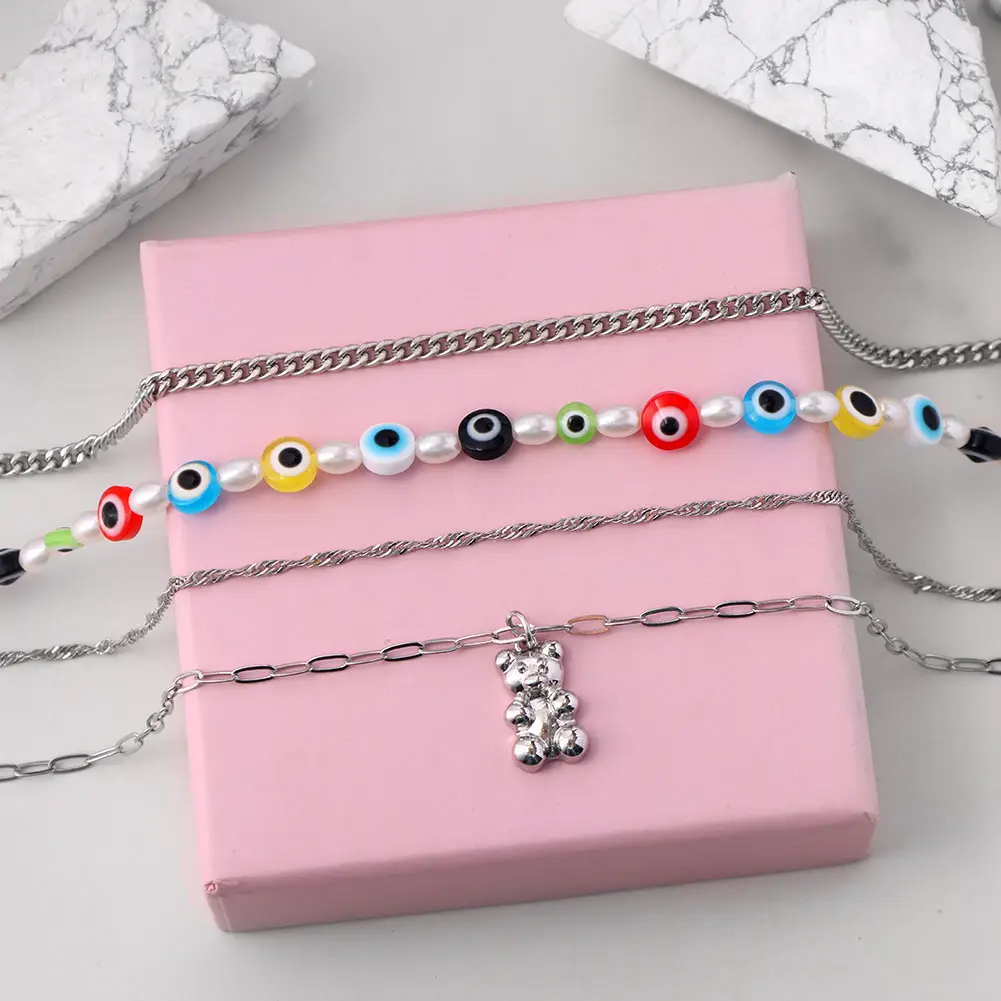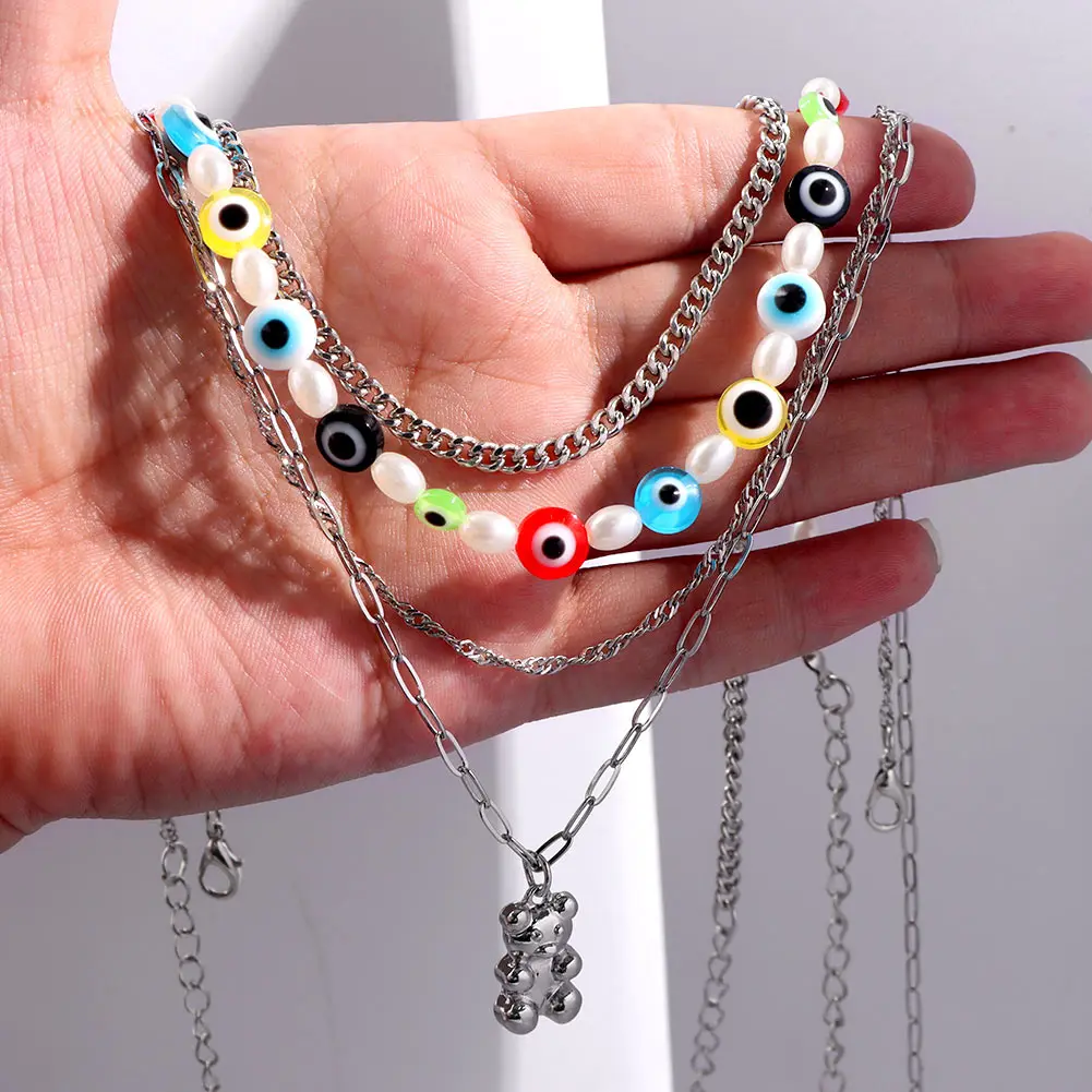 Новинка, стеклянные бусины радужного цвета, жемчужное ожерелье с бисером сглаза для женщин, металлическое ожерелье с подвеской в виде медведя золотого и серебряного цвета, ювелирные изделия