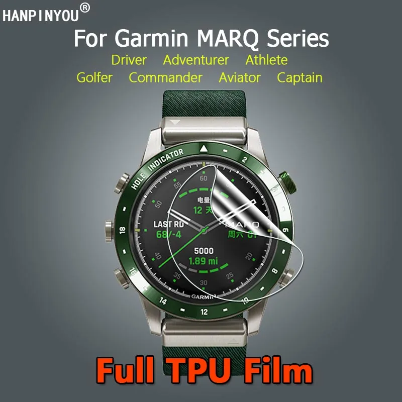 Для Garmin MARQ Driver Adventurer Athlete Golfer Commander Aviator Captain Sports Smart Watch Прозрачный чехол из мягкого ТПУ гидрогеля Защитная пленка для экрана (не закаленное стекло)