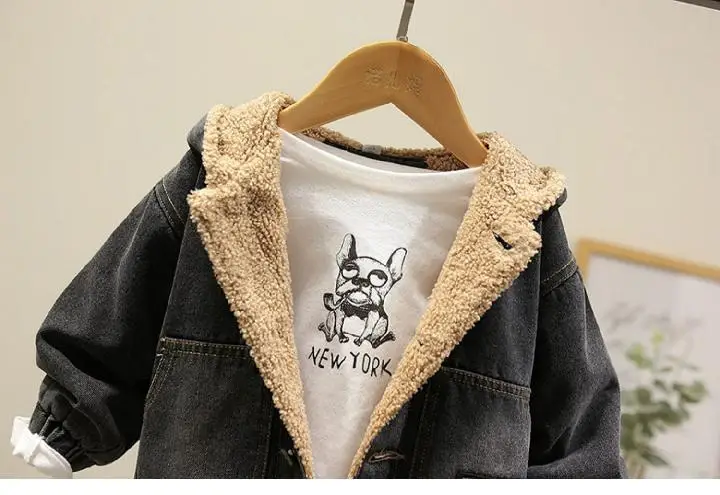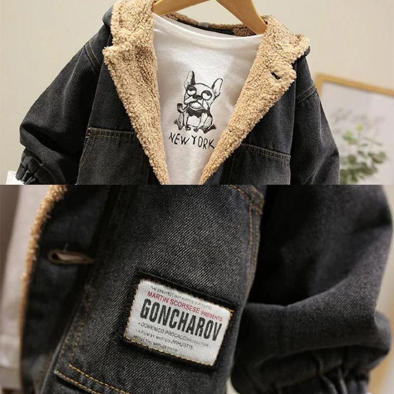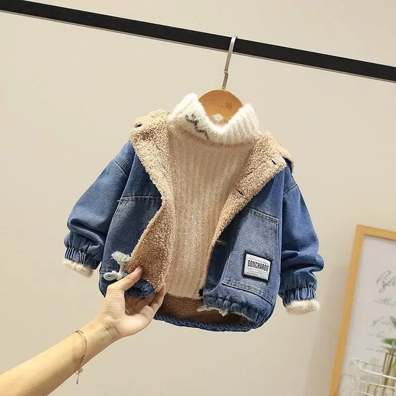 2021 зимняя куртка для девочек, хлопковая джинсовая куртка для мальчиков, теплая бархатная ветровка, Детское пальто, зимняя одежда для маленьких девочек