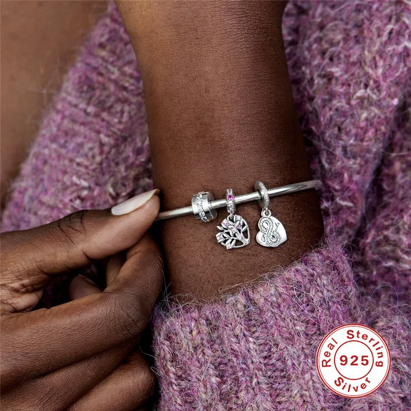 Женский браслет из серебра 925 пробы, с подвеской в виде РОЗОВОГО С...