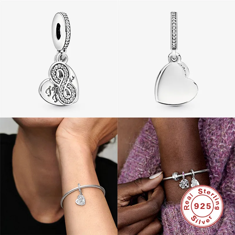 MC Настоящее серебро 925 пробы бусины 8 букв сердце Шарм Подходит оригинальный Pandora браслет Изготовление мода DIY ювелирные изделия для женщин Подарки