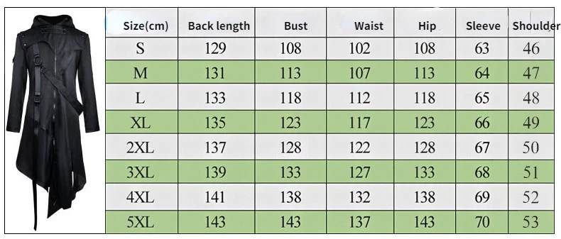 Мужской черный средневековый Ретро тренчкот Косплей Хэллоуин панк с...