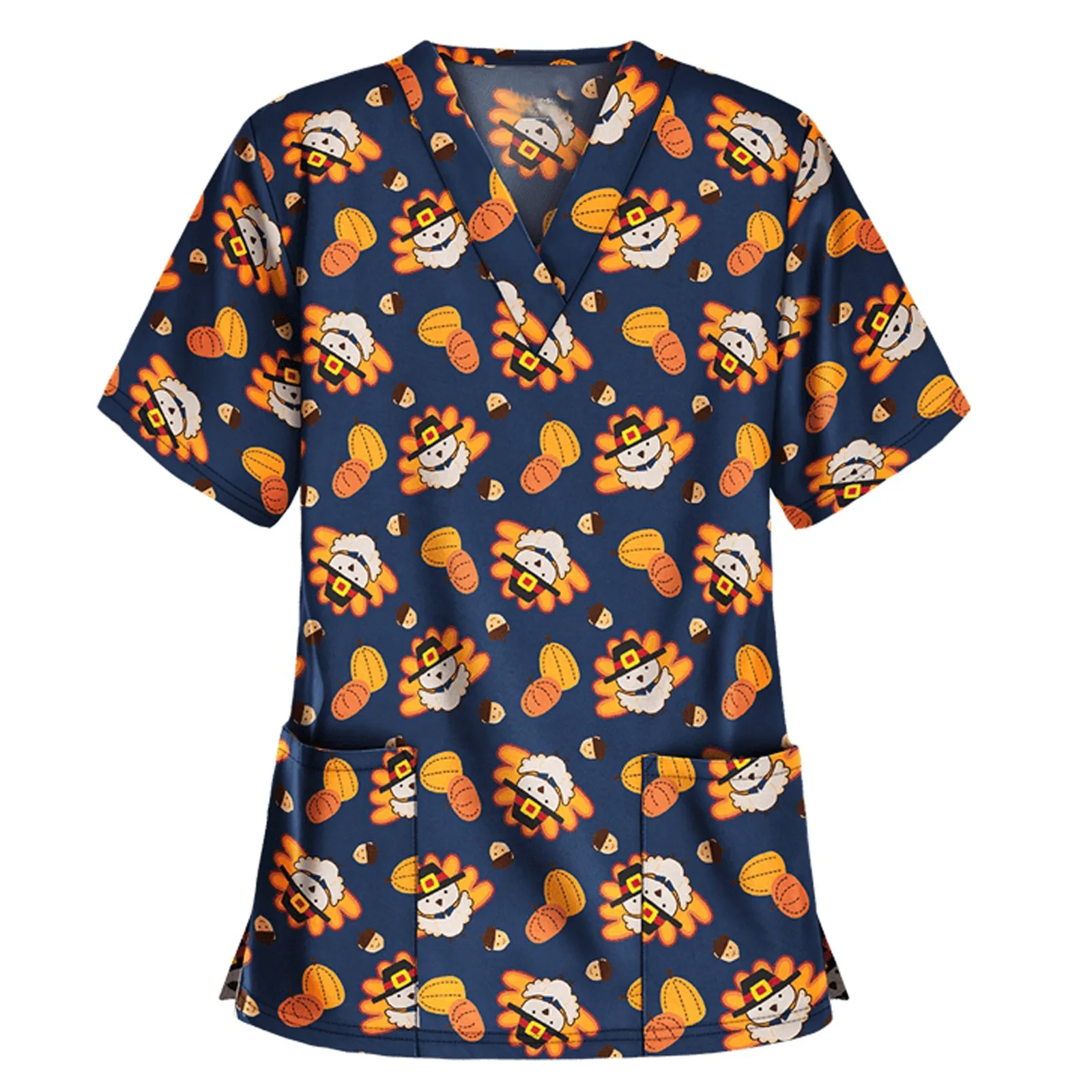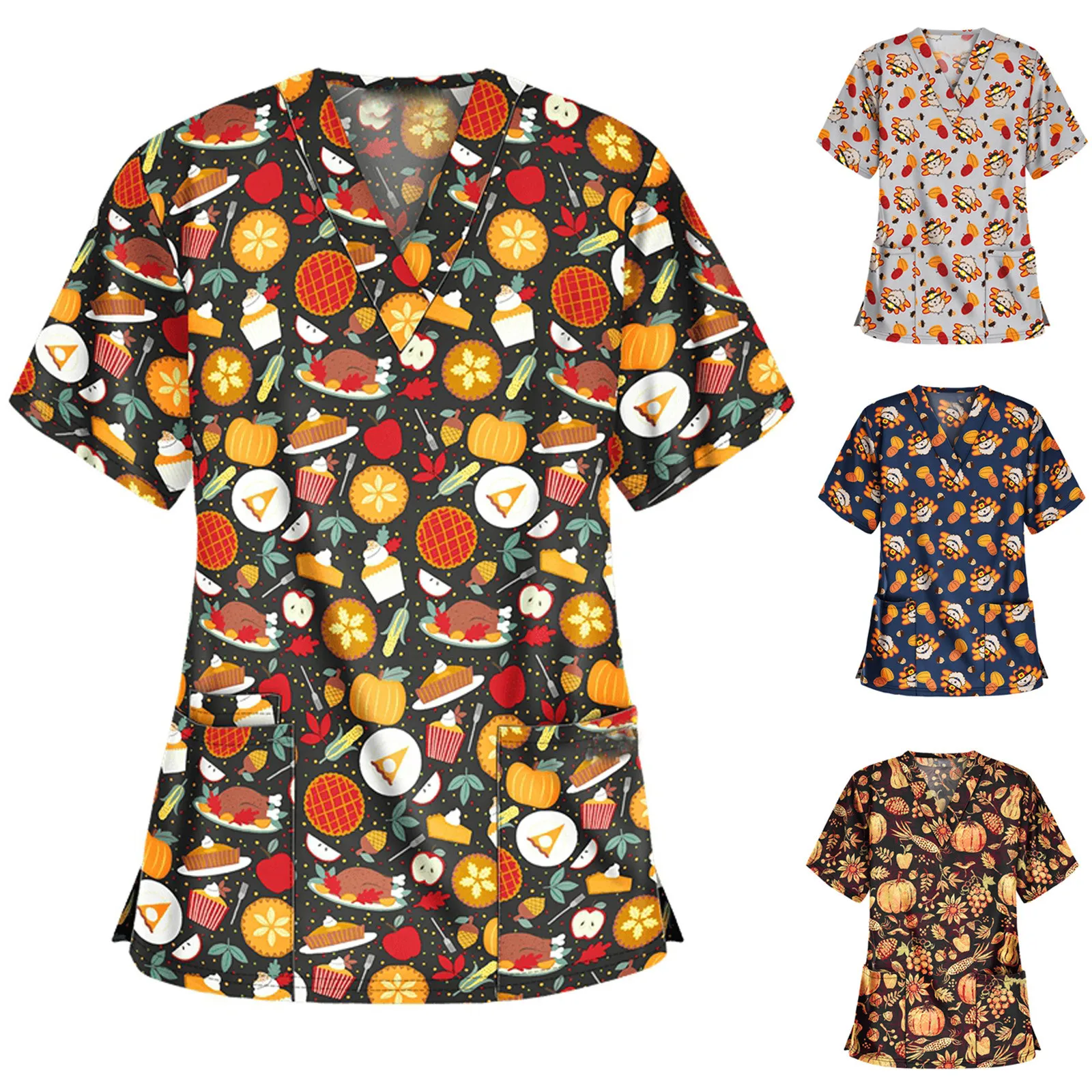 Унисекс Рабочая унисекс форма с принтом фруктов, униформа медсестры с карманом, женский топ с коротким рукавом, туника для ухода за детьми