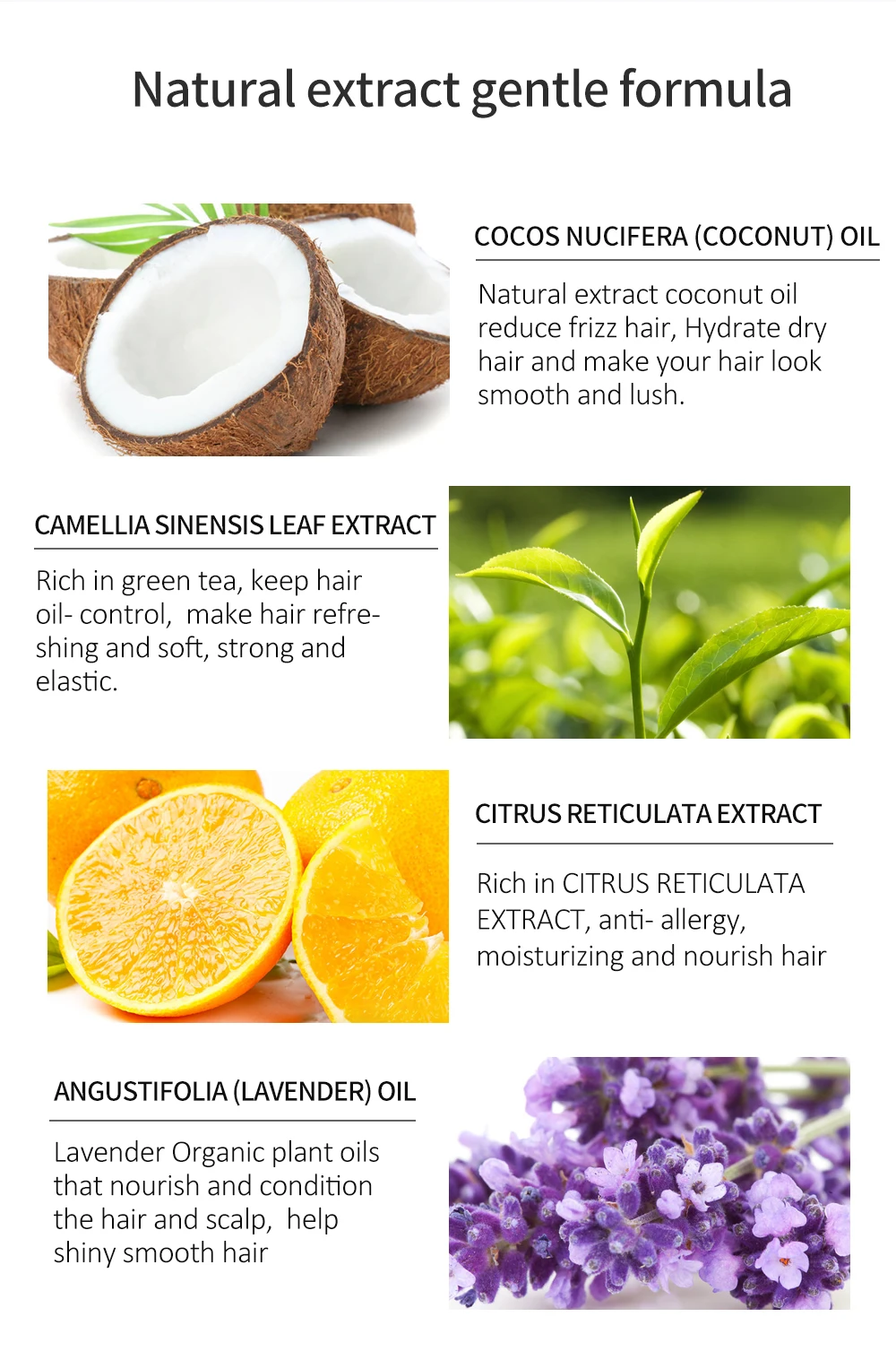 Натуральный Экстракт кокосового масла уменьшает завивки волос, увлажняет сухие волосы и делает ваши волосы гладкими и пышными.