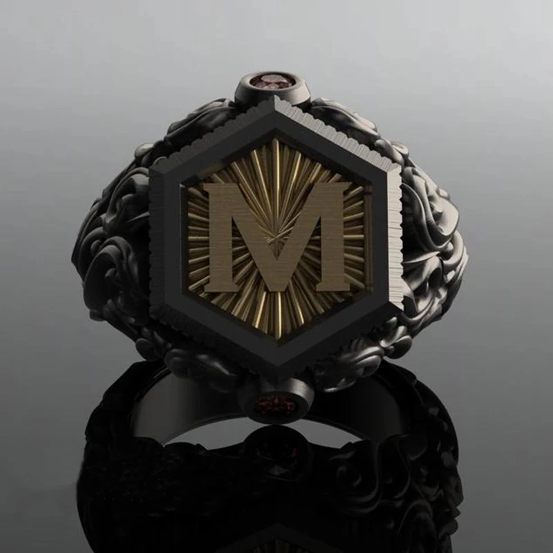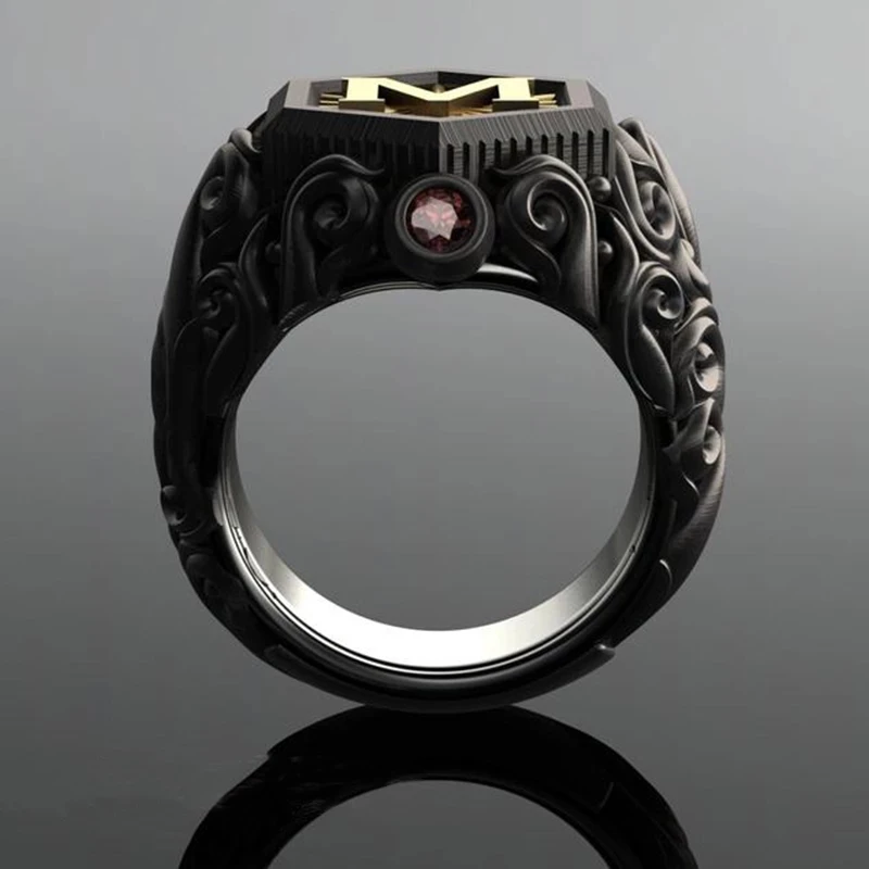 Классические модные богемные черные кольца с буквами M из нержавеющ...