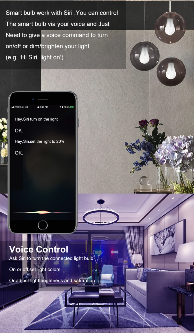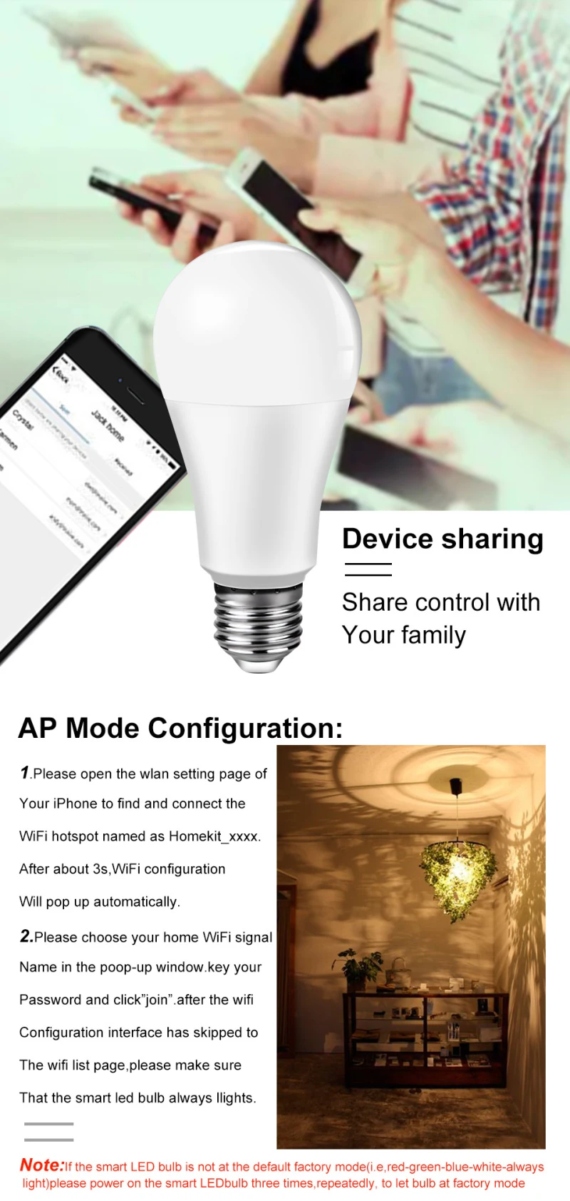 1. Высококачественный WiFi умный светильник, поддержка голосового управления, например, для alexa, для Google home, для Apple Siri, для IFTTT и т. д.