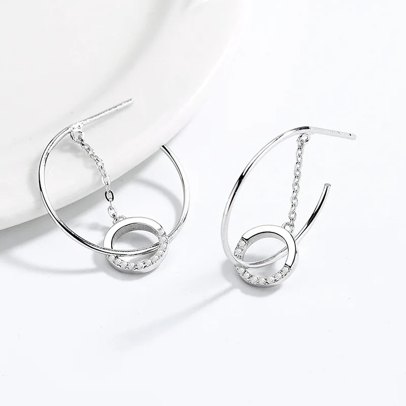 Серьги-кольца женские из серебра 925 пробы с фианитами, DS953