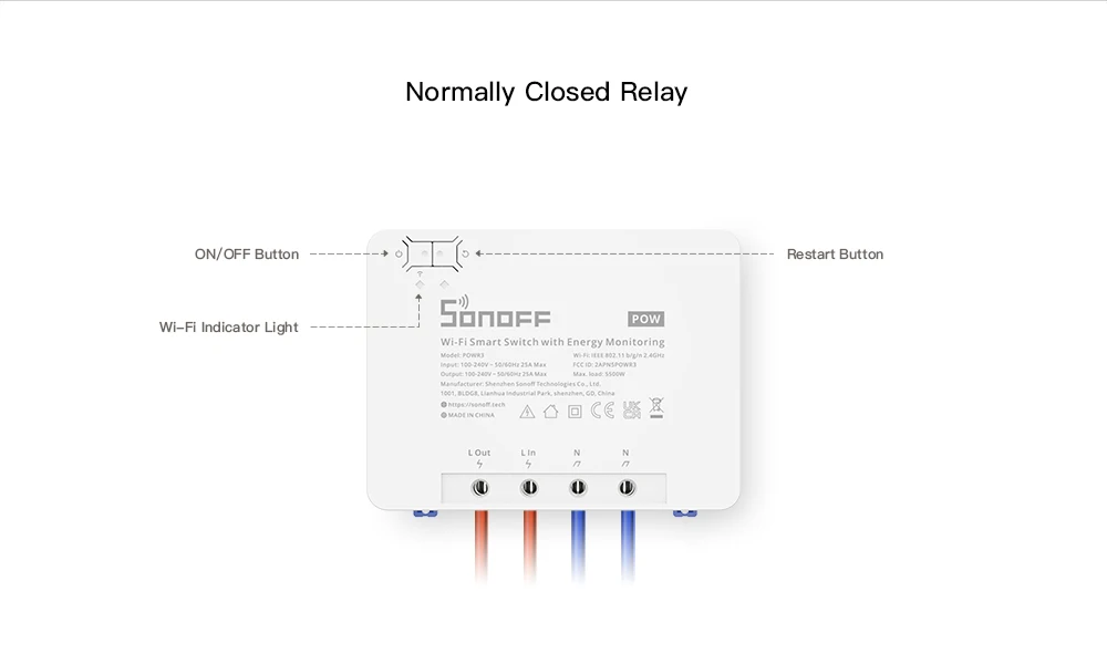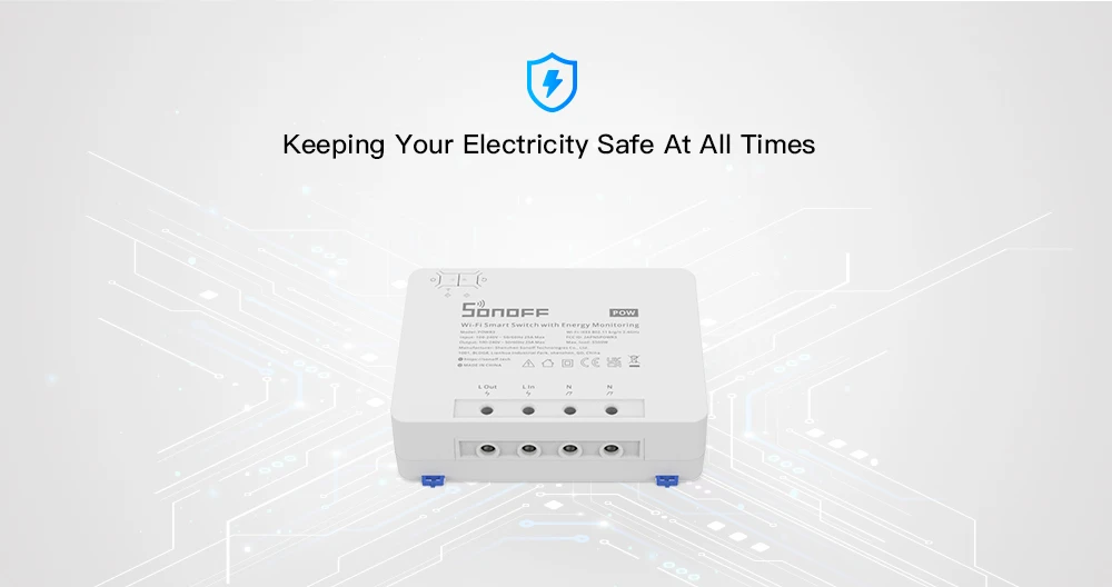 SONOFF POWR3 WiFi умный DIY Переключатель 25A 5500 Вт измеритель мощности Защита от перегрузки энергосберегающее приложение eWelink Alexa Voice Conrol