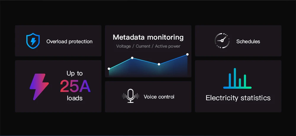 POWR3 достаточно мощный, чтобы действовать в качестве Умного метра для одной комнаты, соединяя все приборы в комнате с POWR3 и потребляемая мощность каждой комнаты подсчитывается индивидуально. Более того, POWR3 сохранит данные о потреблении в течение 100 дней, которые могут быть экспортированы в CSV на вашем телефоне.Защита от перегрузки не будет зависеть от сети для контроля напряжения, тока и мощности нагрузок во все времена.Как только обнаружится аномалия, мощность будет отключена, чтобы избежать повреждения устройства и опасности.POWR3 поддерживает Alexa smart energy, которая помогает вам экономить энергию.Вы можете централизованно просматривать общее или индивидуальное энергопотребление устройства на приборной панели.* Примечание: POWR3, как ожидается, получит доступ к приборной панели Alexa Energy для точного потребления энергии в августе 2021, в течение которого вы можете вручную ввести мощность ваших нагрузок, чтобы получить расчетное энергопотребление.