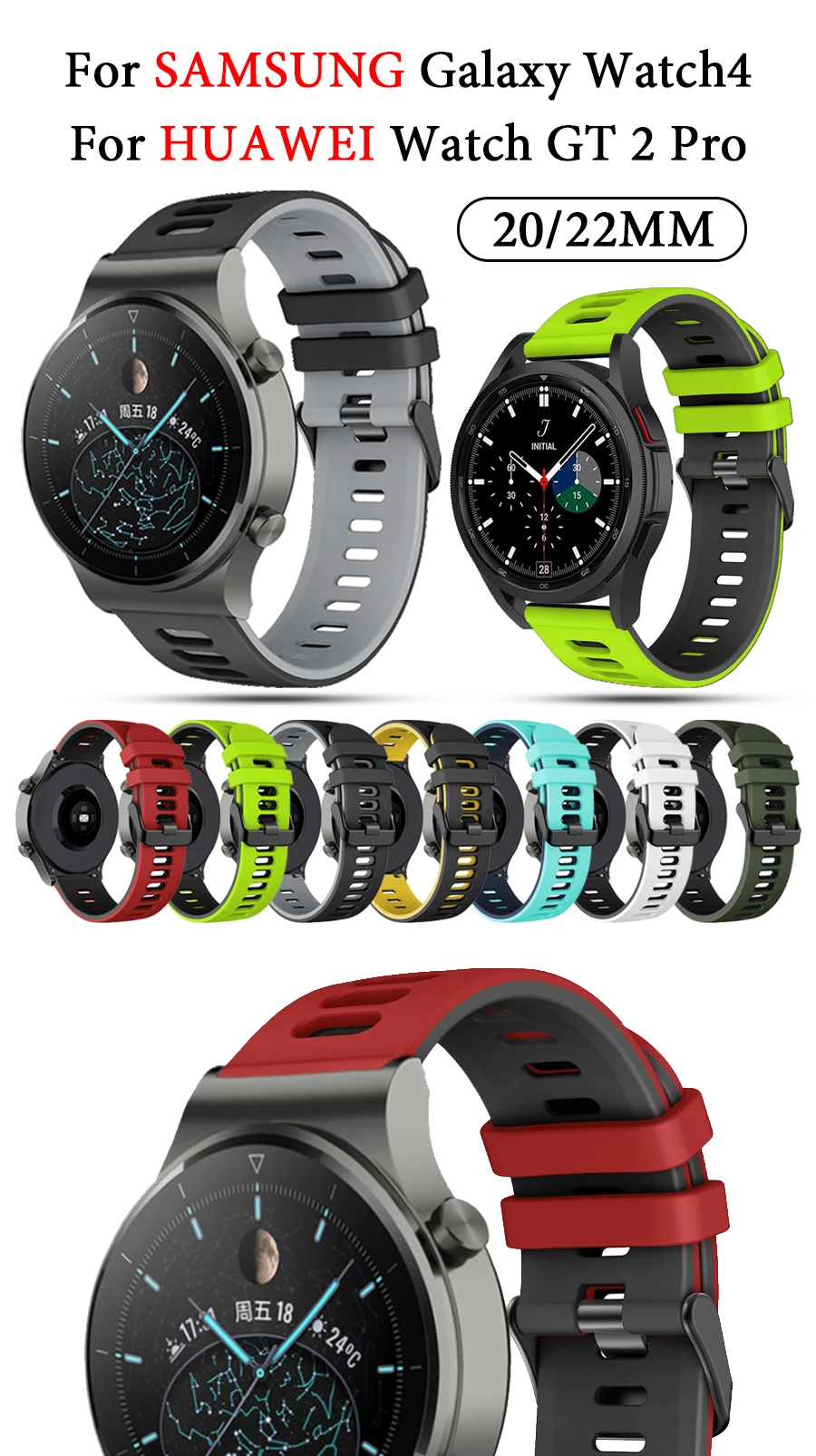 20 мм/22 мм силиконовый ремешок для смарт-часов Samsung Galaxy Watch4 40/44 мм/HUAWEI GT2 Pro спортивные часы браслет Amazfit GTR 42 мм/47 мм ремешок Correa