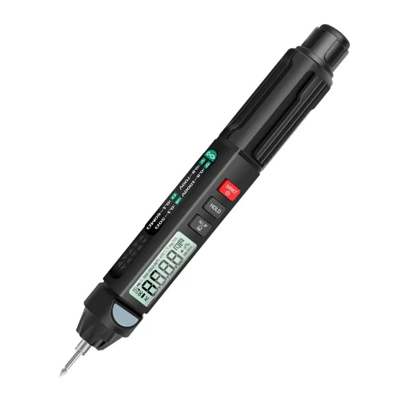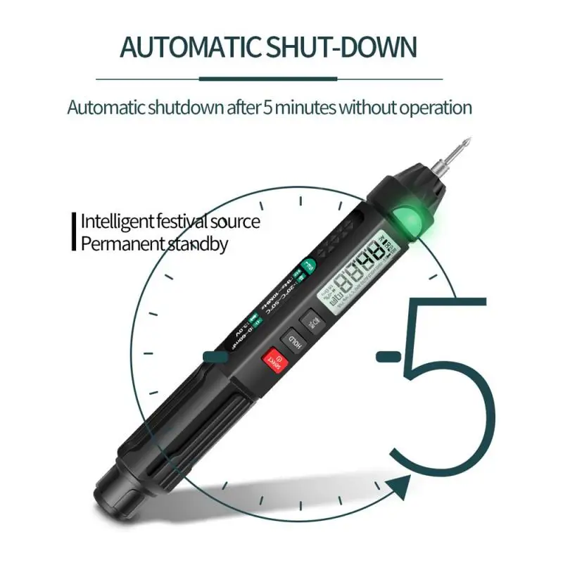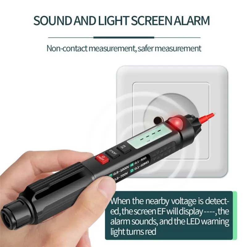 Универсальный мультиметр-ручка: Этот мультиметр отличается испытанием сопротивления/емкости/диода/частоты/температуры, непрерывности, нулевой линии и Бесконтактного обнаружения напряжения и т. д.