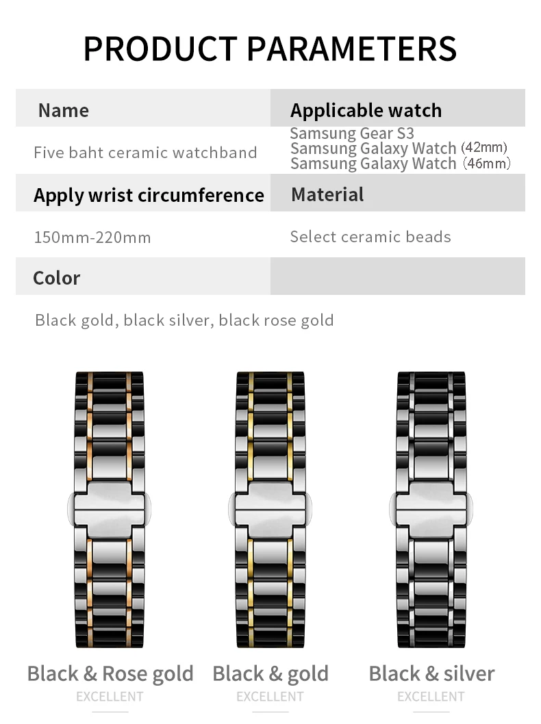 22 мм керамический ремешок Samsung Galaxy watch 46 мм ремешок Gear ...
