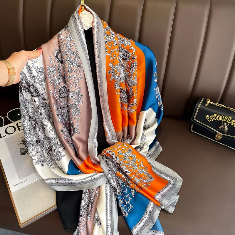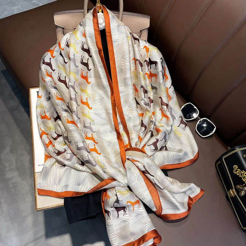Брендовый дизайнерский шелковый шарф, женские длинные шали, палантины, Осенние банданы, шарфы, Пашмина, женский роскошный пляжный хиджаб, платок 90*180 см