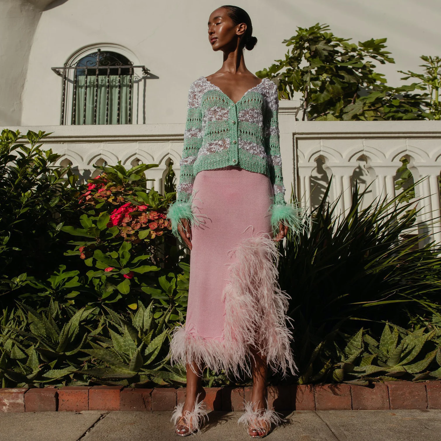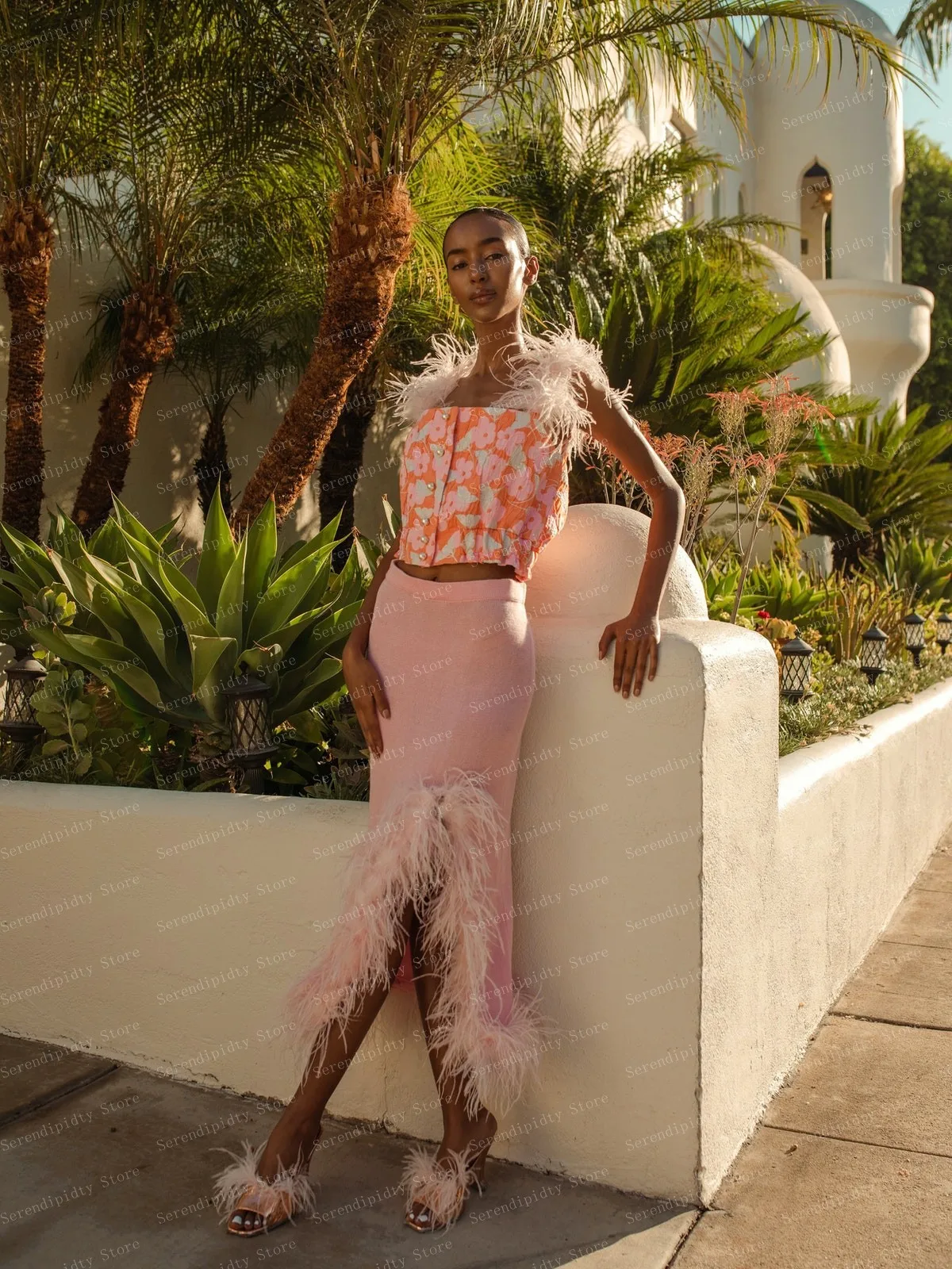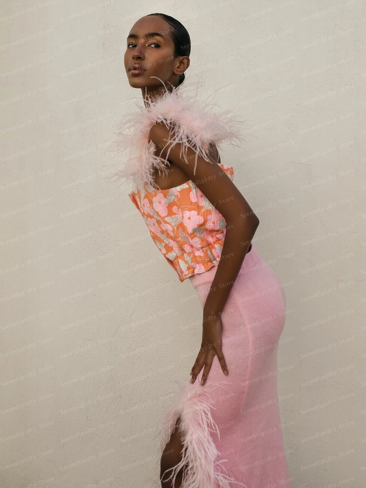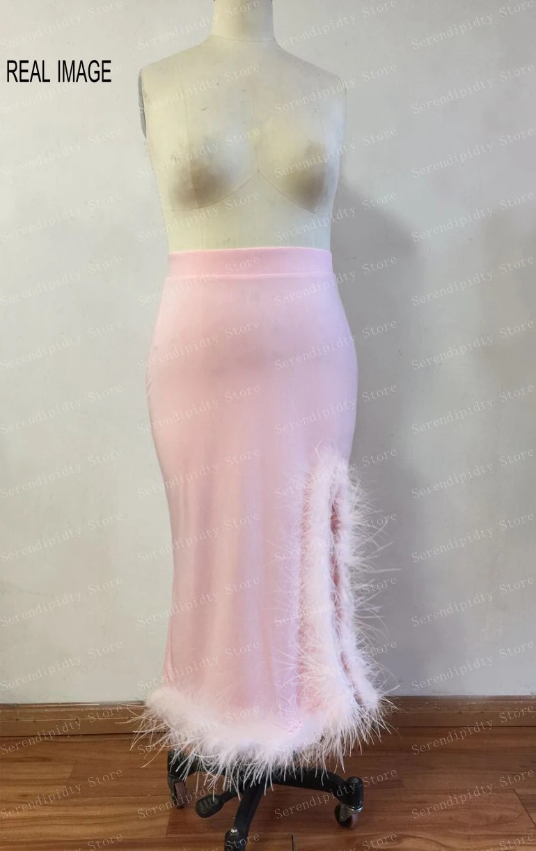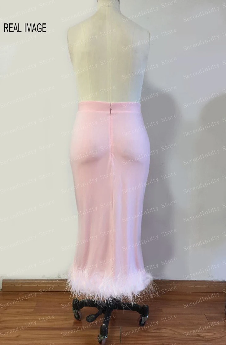 Женская трикотажная юбка-карандаш с перьями, розовая эластичная юбка-карандаш для выпускного вечера