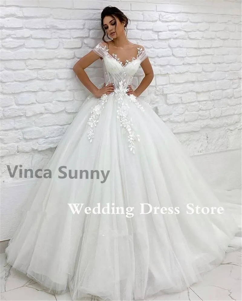 Элегантное Тюлевое свадебное платье принцессы с прозрачными рукавами-крылышками и кружевной аппликацией с пуговицами сзади Свадебное платье 2022 Robe de mariage