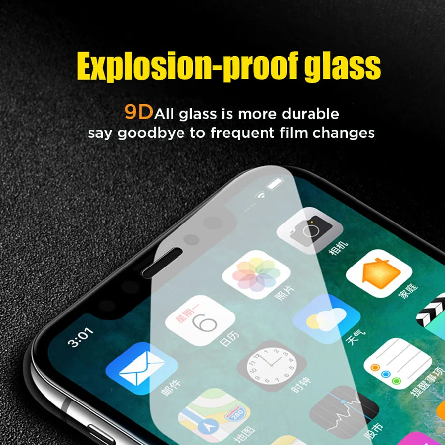 9D закаленное стекло для iPhone 13 12 Mini 7 Plus XR XS X 8 6 6S SE...