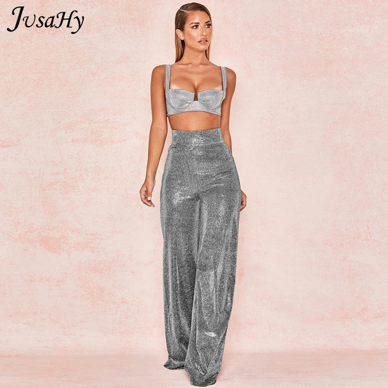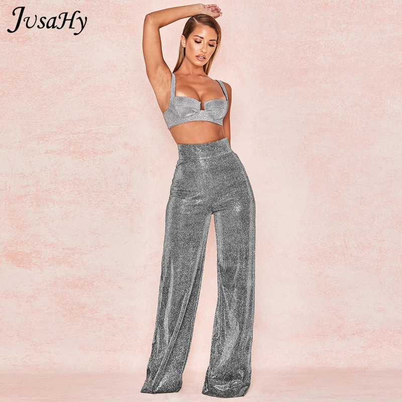 Сексуальные прозрачные яркие шелковые прямые брюки JuSaHy с высокой талией для женщин Y2K Модные свободные брюки с завышенной талией для вечеринки Клубная одежда Лидер продаж