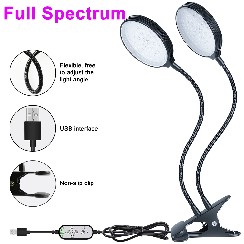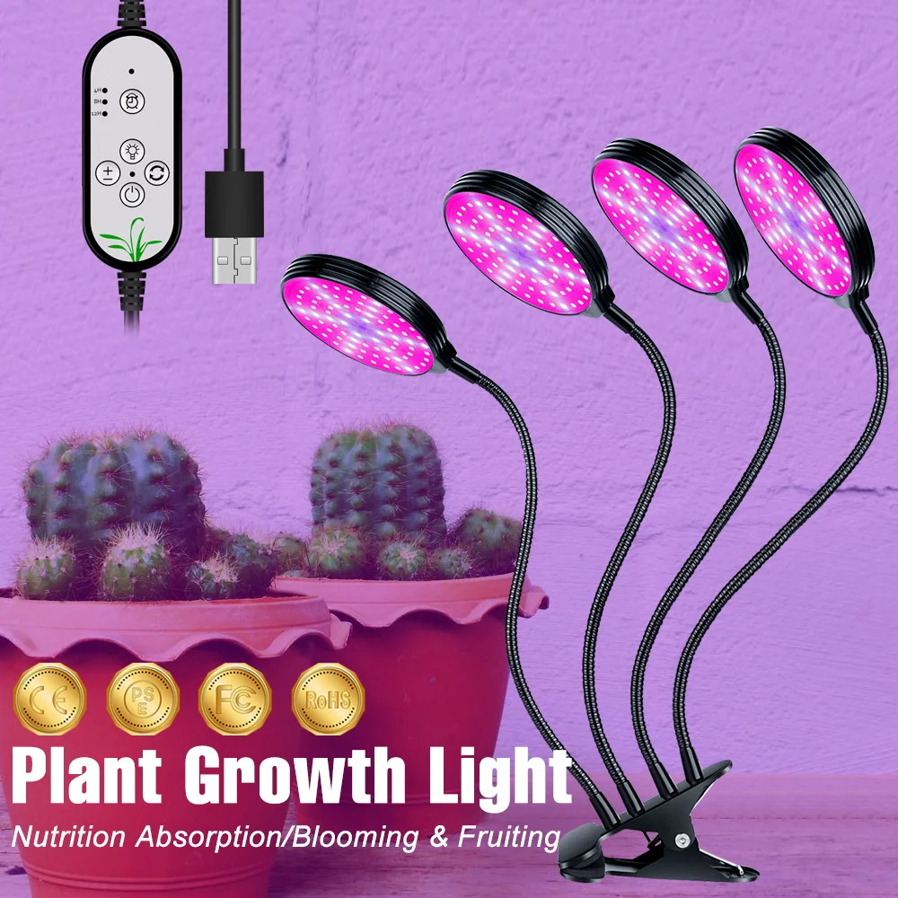 Фитолампа 1,2 с 3 головками и таймером, USB светильник ПА полного с...