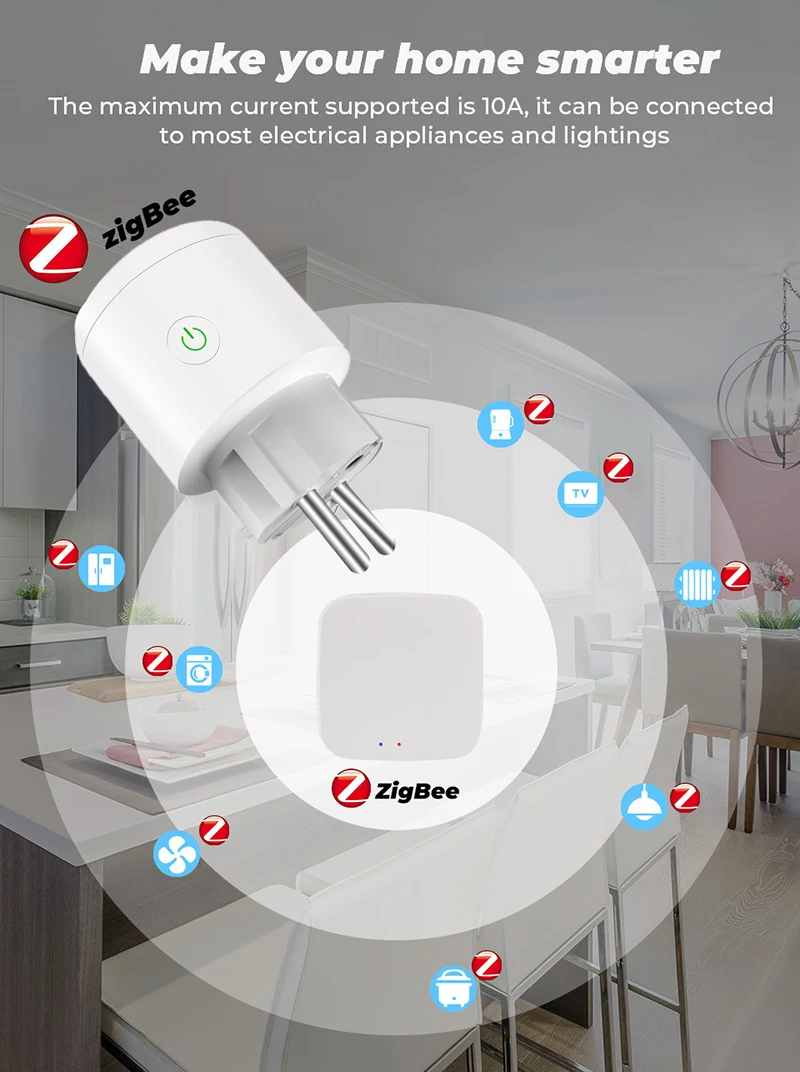 Умная розетка Tuya Zigbee может управляться удаленно мобильными телефонами через приложение «Tuya smart», а Голосовое управление также может быть достигнуто через Google Home и Alexa; С другой стороны, эта розетка имеет мощные функции, такие как монитор питания, обратный отсчет времени, семейный обмен,