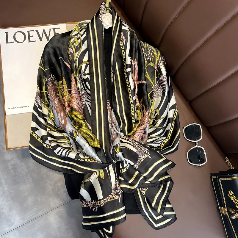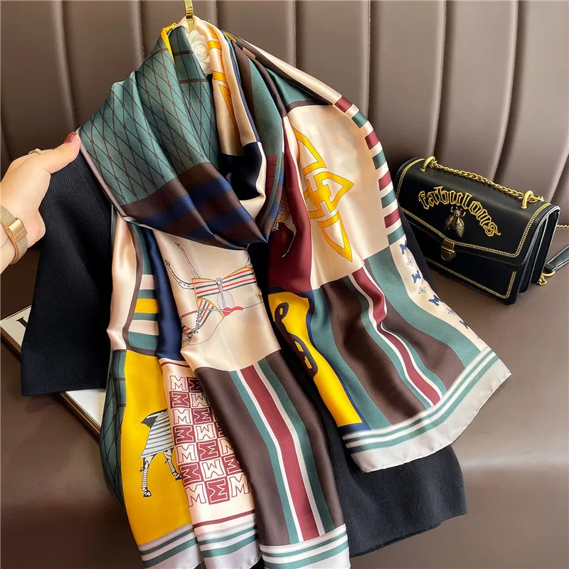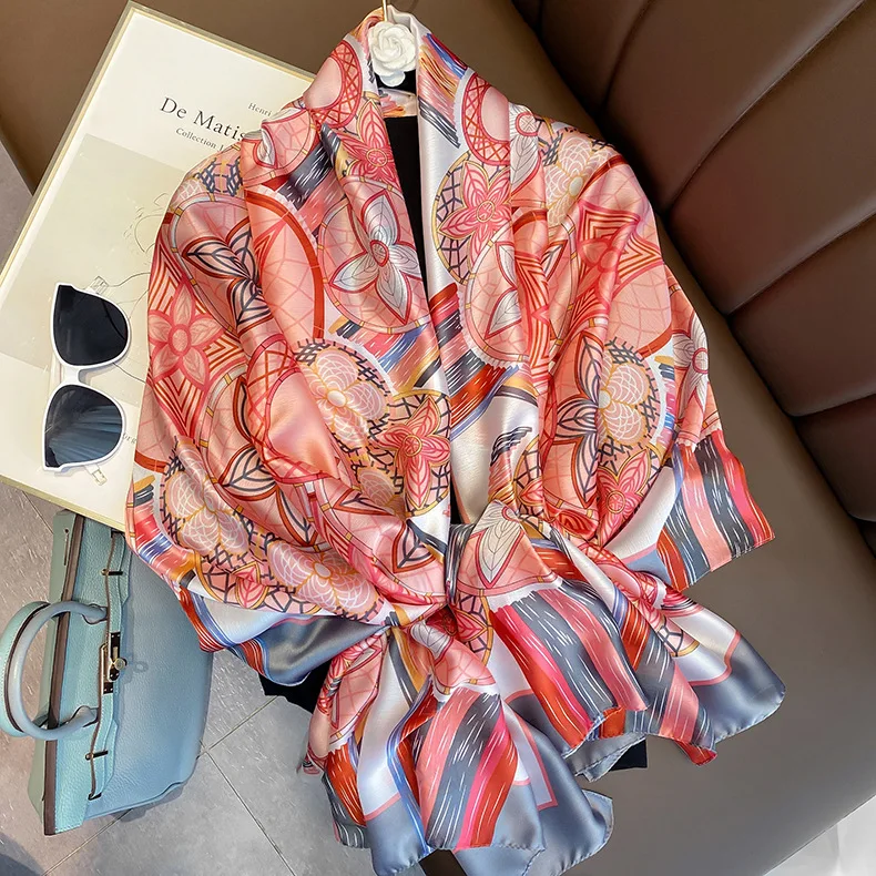 Брендовый дизайнерский шелковый шарф, женские длинные шали, палантины, Осенние банданы, шарфы, Пашмина, женский роскошный пляжный хиджаб, платок 90*180 см