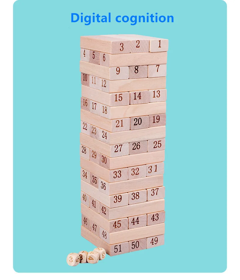 51 шт.компл. деревянные игрушки, качественная буковая башня, деревя...