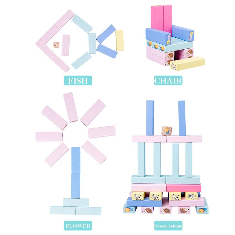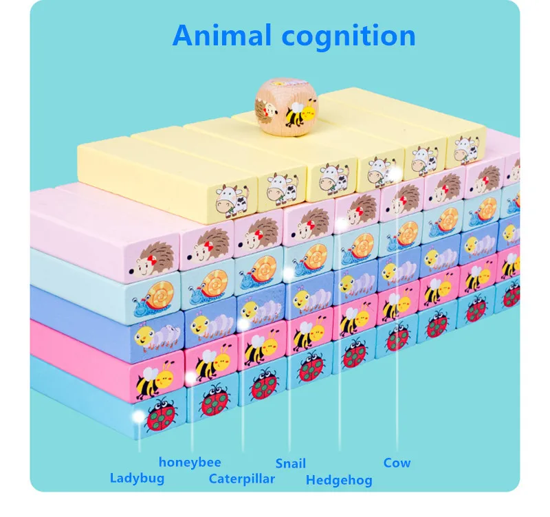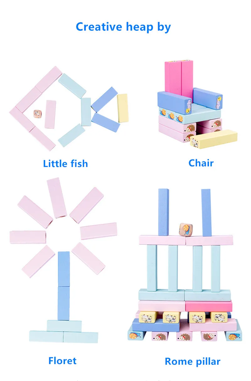 ESUN 51 шт.компл. деревянные игрушки, теплый цвет, радуга, животные, башня, строительные блоки, игрушка, домино, настольная игра Монтессори, детская игрушка
