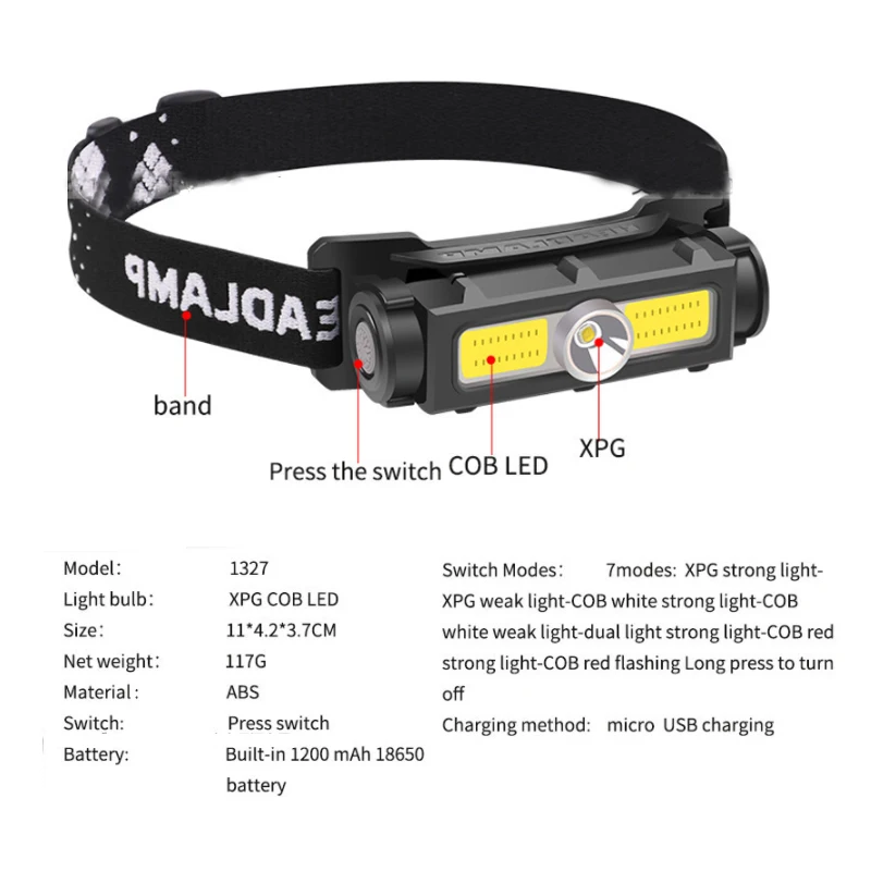 Сильный налобный фонарь, новый XPG + COB налобный фонарь для рыбалки с магнитом, встроенный аккумулятор, 3 уровня, регулируемый, для кемпинга