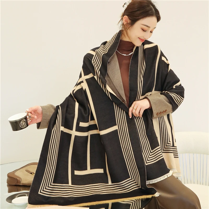 2022 зимний шарф, новый стиль, кашемировый теплый хиджаб, роскошный принт, лошадь, полоса, толстое одеяло, шаль, накидка, бандана, шарфы, 180*65 см