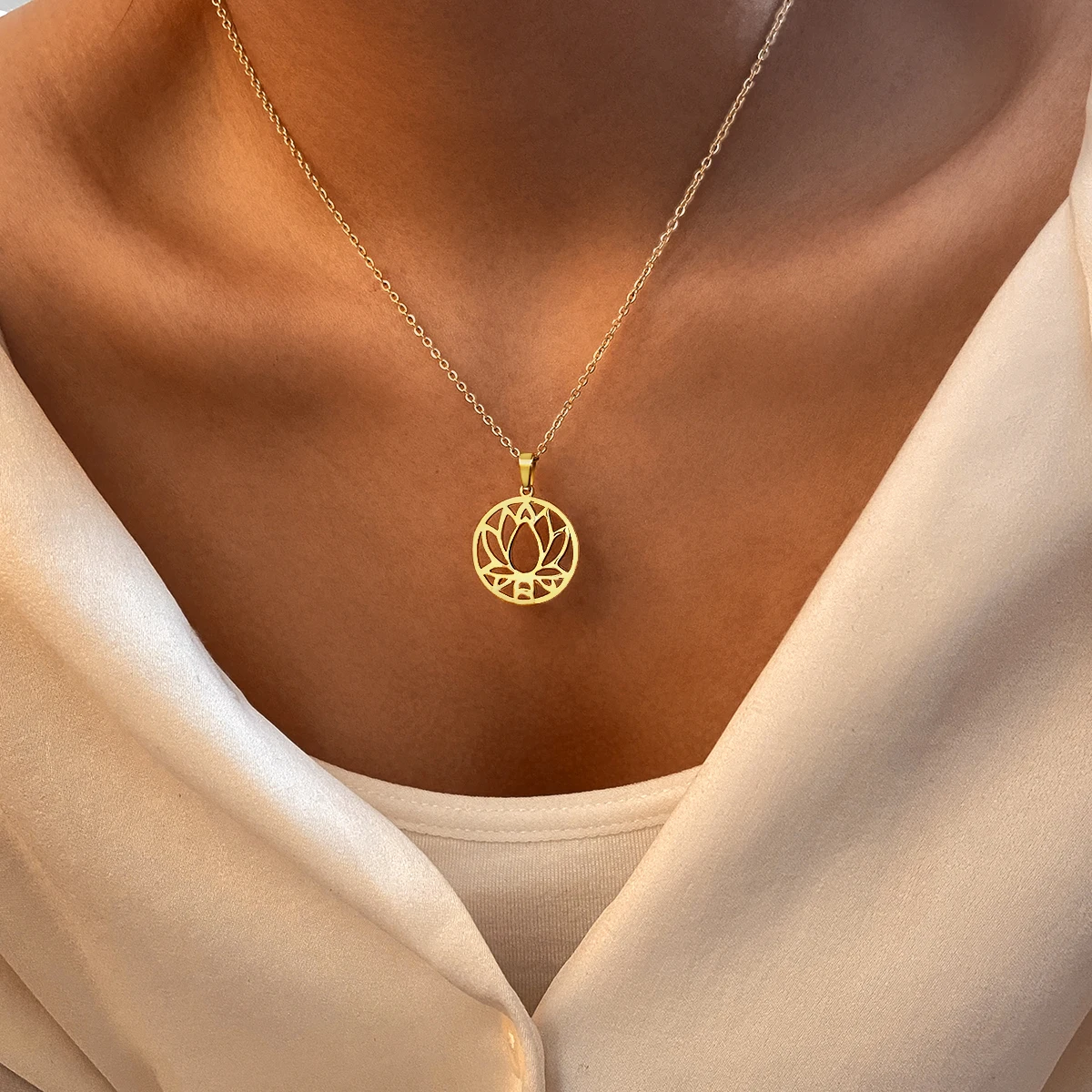 Ожерелья из нержавеющей стали, Крупные круглые подвески в форме лотоса, цепочка-чокер, бижутерия, модное ожерелье для женщин, бижутерия, подарки вечерние, Новинка