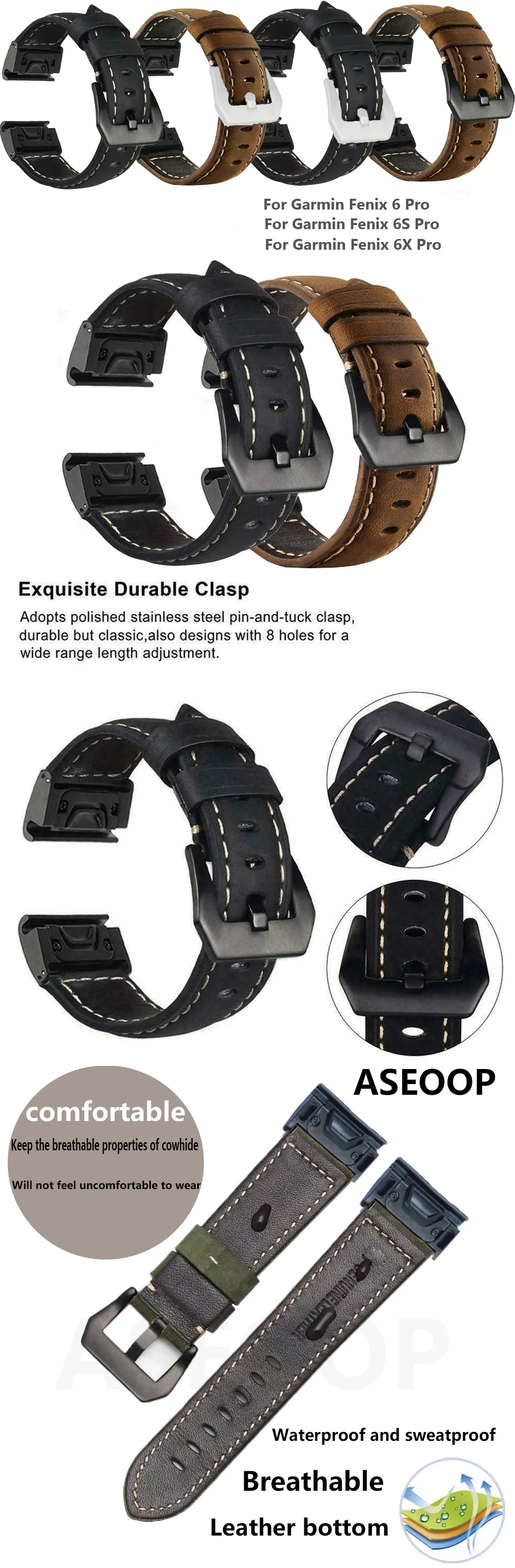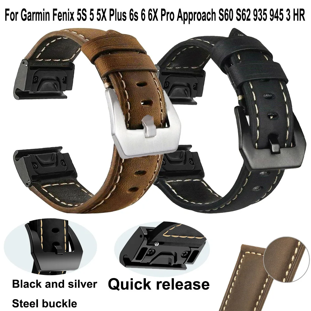 Ремешок для часов из натуральной кожи для Garmin Fenix 6X 6 6S Pro 5X 5 5S plus 3 3HR Forerunner 935 945 ремешок для браслетов умные аксессуары