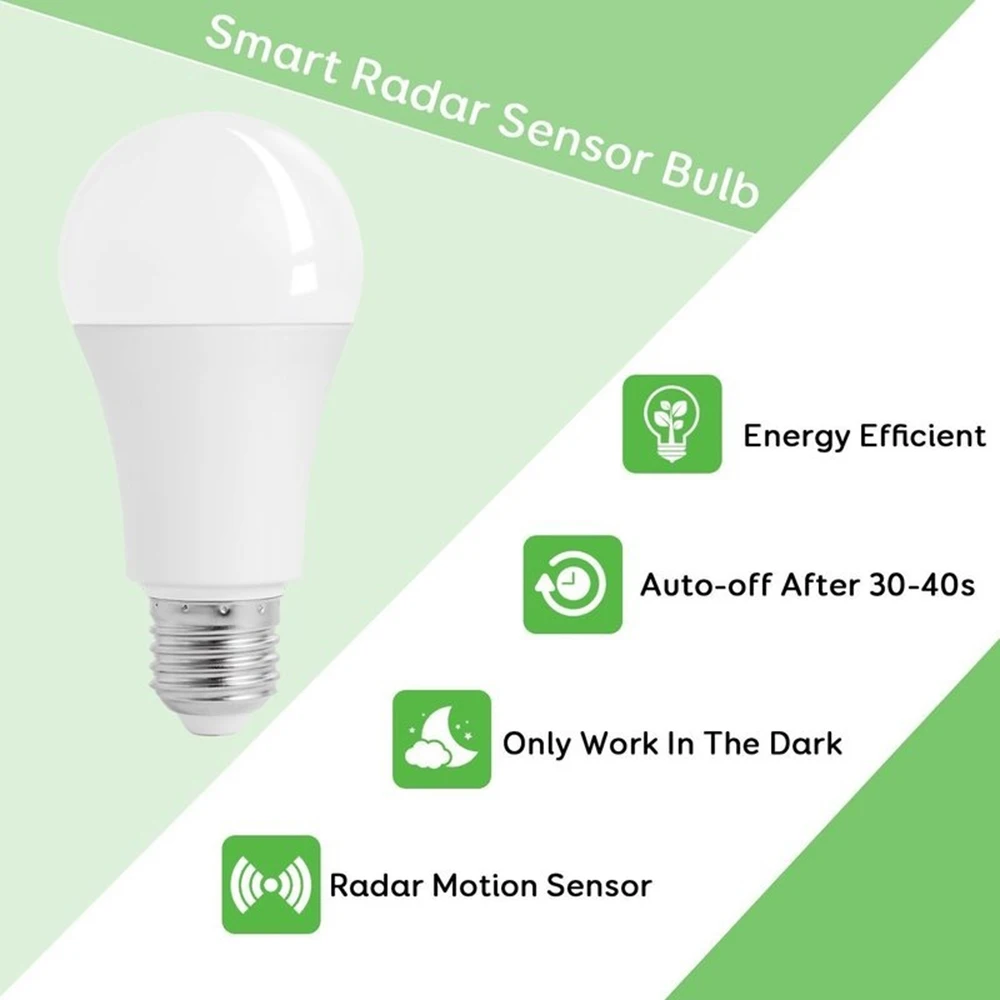 4. [широкое применение] -- Ночная лампочка с датчиком радара подходит для установки в спальню, туалет, лестницу, прихожую, внутренний двор, входную дверь и так далее. Обеспечивает яркий белый светильник и предотвращает появление пятен в темноте