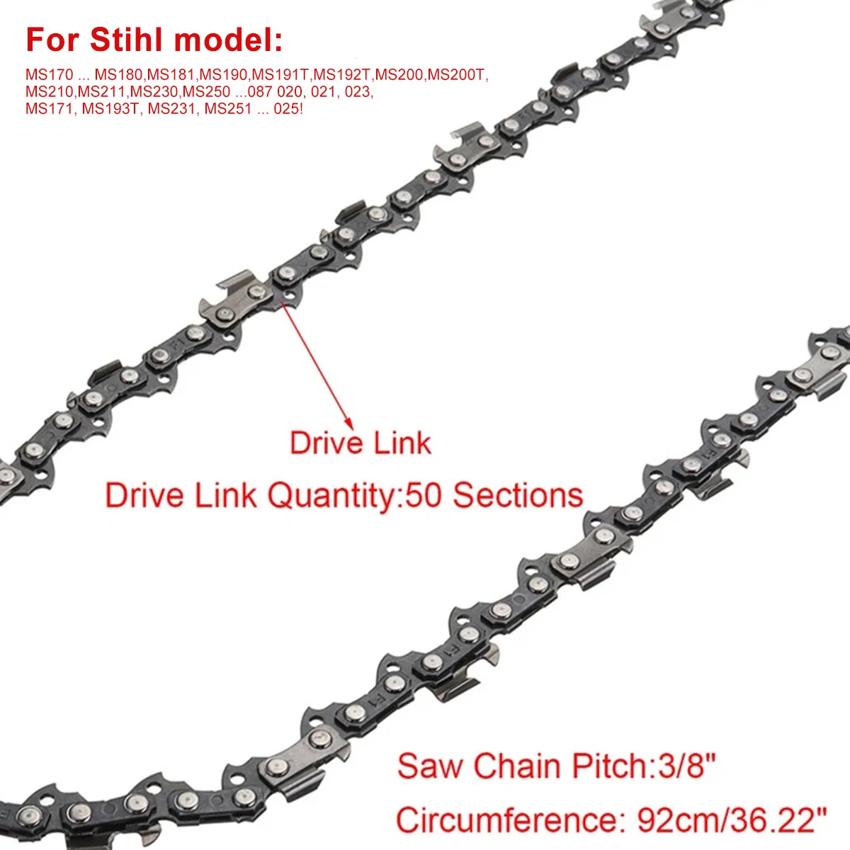 14 дюймов, 65Mn ,3/8LP шаг, 50DL, для STIHL, сменная цепь, аксессуары для бензопилыПильная цепь, направляющая цепной пилы, бар, 14 дюймов Цепь для пилы, 65Mn Пильная цепь, 3/8LP Шаг Пильная цепь, 50DL Пильная цепь, 39x6,2 см направляющая цепной пилы, бар, Пильная цепь для STIHL MS170. .. MS180 MS181, цепь пилы для MS190 MS191T MS192T MS200, цепь пилы для MS200T MS210 MS211 MS230, цепь пилы для MS250. .. 087 020 021 023 MS171, цепная пила для MS193T MS231 MS251. .. 025