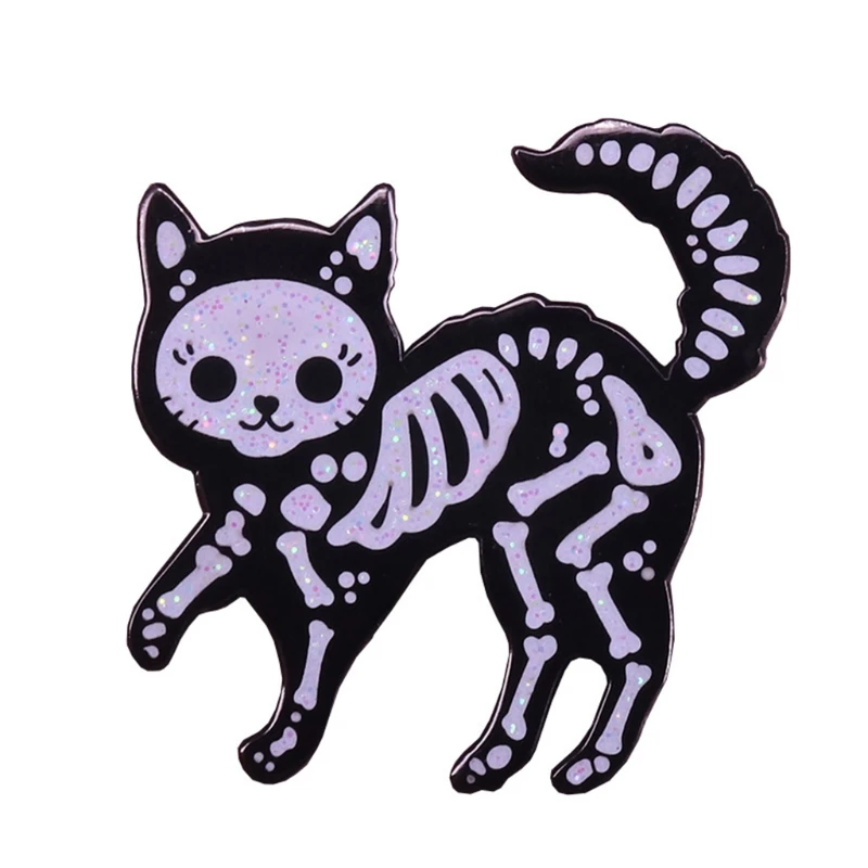 Животное Скелет Череп эмалевые броши, булавки кошка скрещенные кост...
