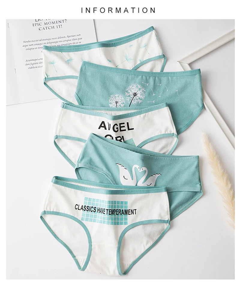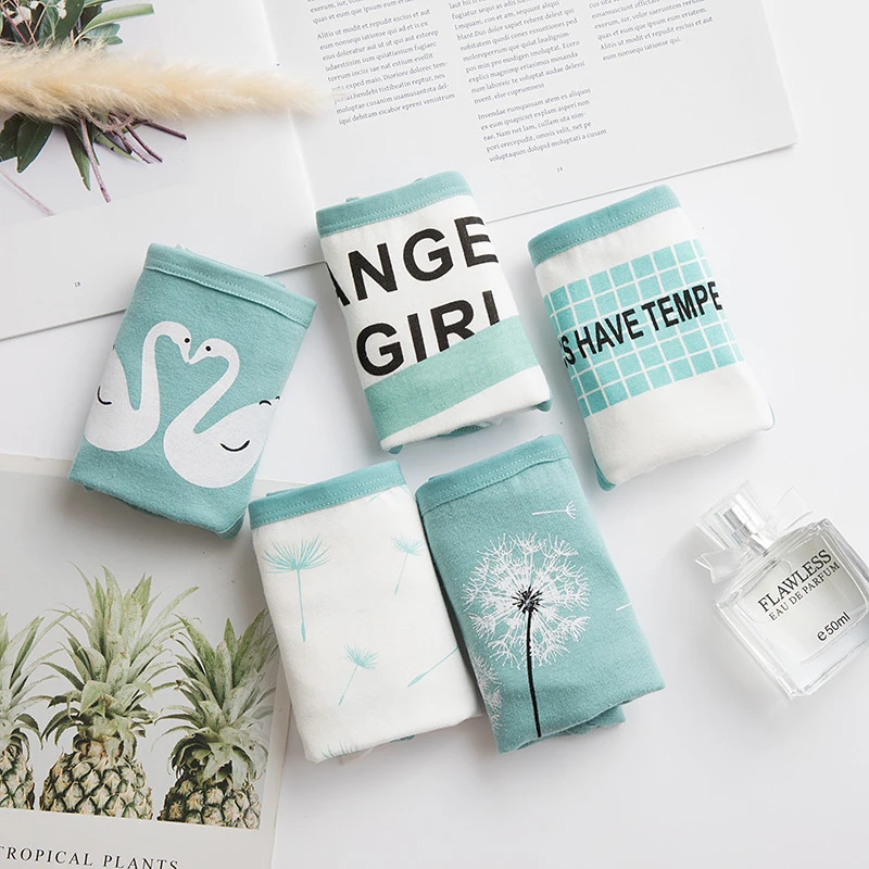 Трусики женские хлопковые дышащие, нижнее белье со средней посадкой, с лебедем, одуванчиком, мягкие удобные пикантные милое нижнее белье для девушек
