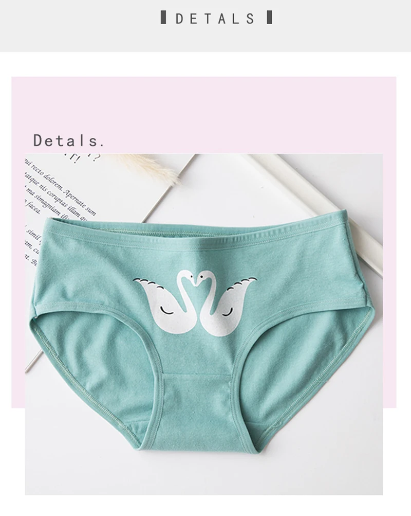 Женские хлопковые трусики, дышащие трусы до середины талии, лебедь,...