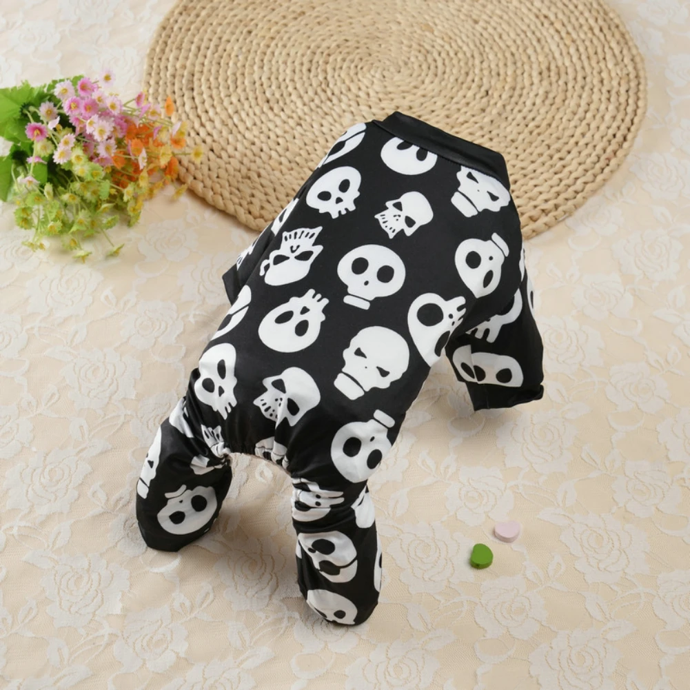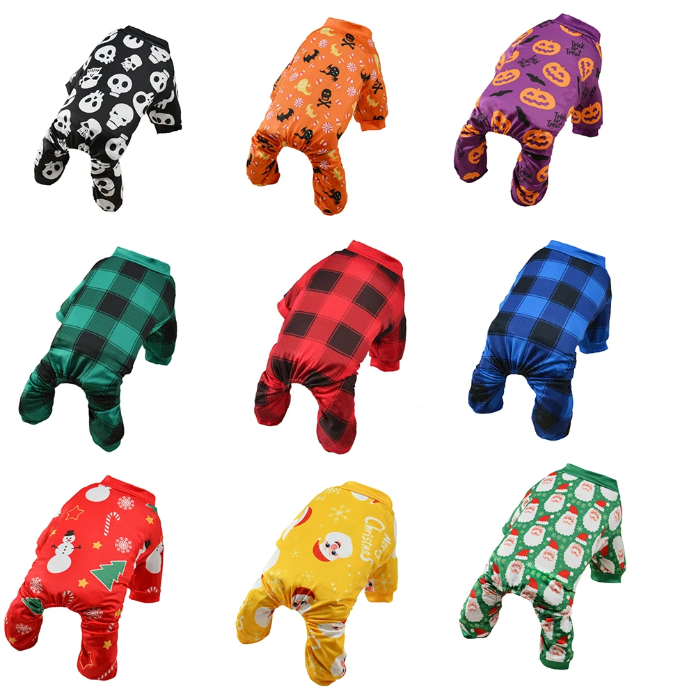 Пижама с мультяшным принтом для собак, Эластичный Мягкий комбинезон для собак, боди в шотландскую клетку, пальто для Хэллоуина, Рождества, одежда для собак и кошек