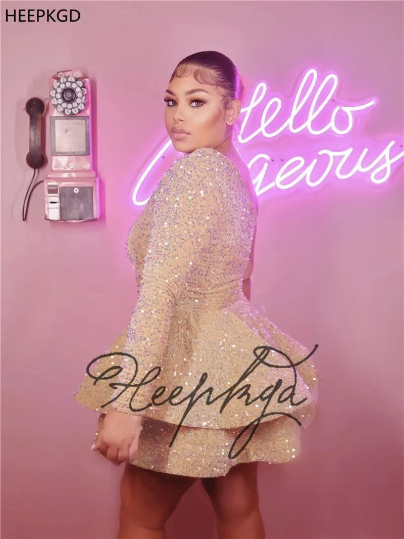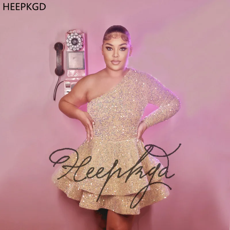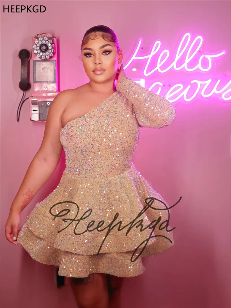 Короткие Выпускные платья на одно плечо 2021 блестящие многоярусные блестящие трапециевидные черные платья для девушек для встречи выпускников на день рождения