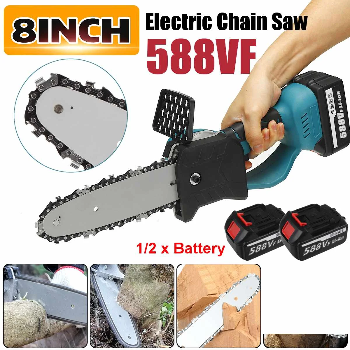 -- Широкое применение: Эта электрическая бензопила имеет широкий спектр применения, используется для резки леса, резки дерева, обрезки веток и так далее.