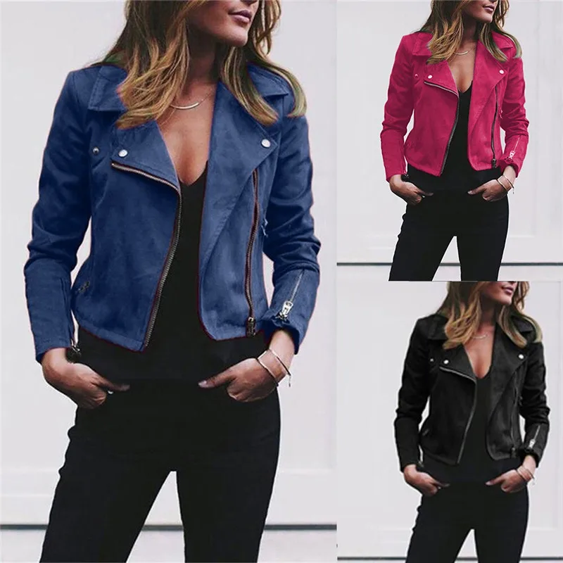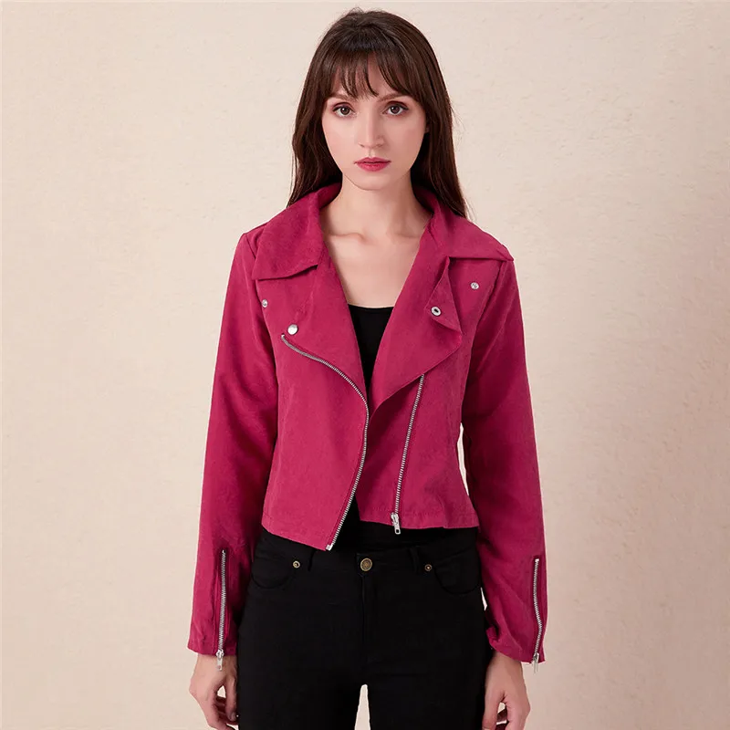 Куртка женская из искусственной замши, однотонная Байкерская верхня...