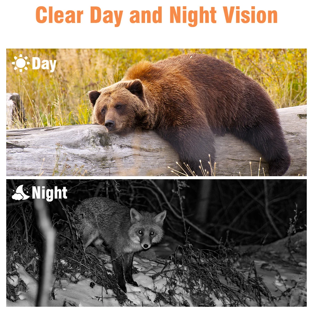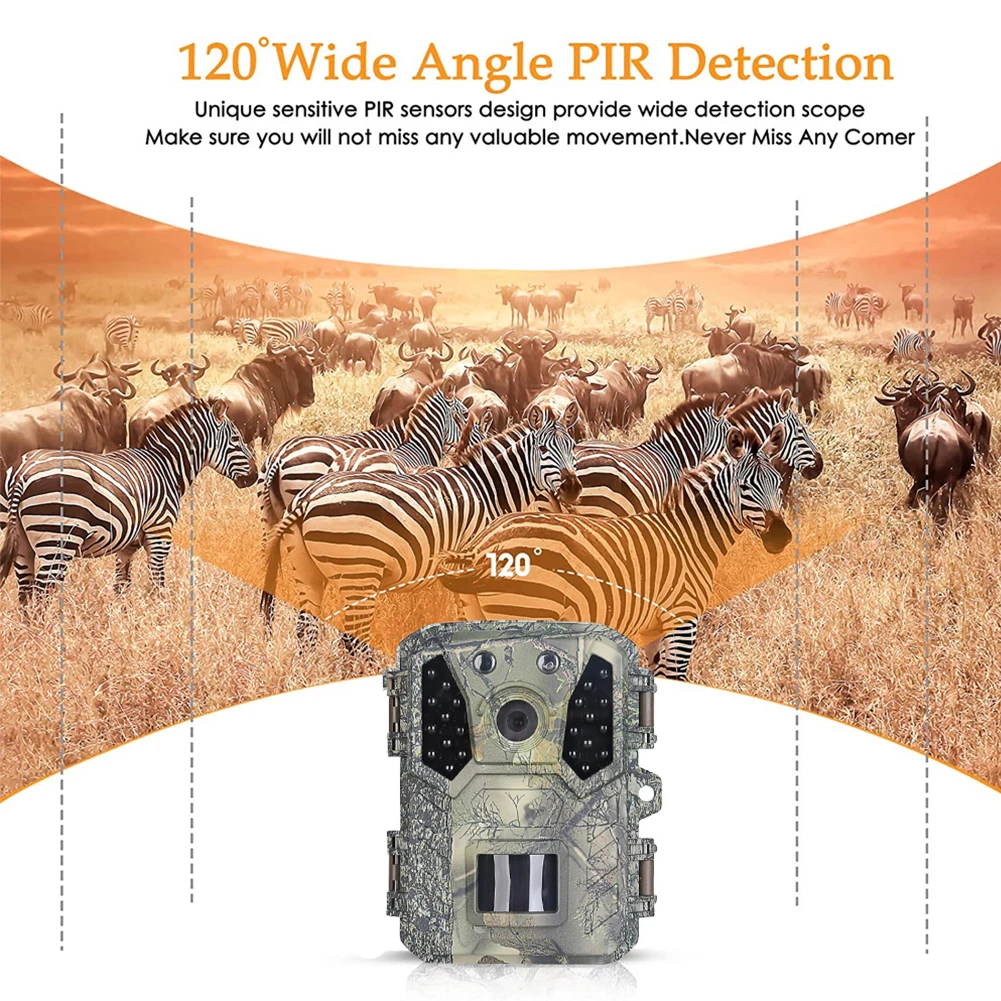 * 1. Разрешение 20MP и разрешение видео FULL HD 1080P обеспечивают кристально четкие и реалистичные изображения и видео, которые позволят вам погрузиться в мир дикой природы, помогая вам лучше понять их повседневную деятельность и привычки в жизни.