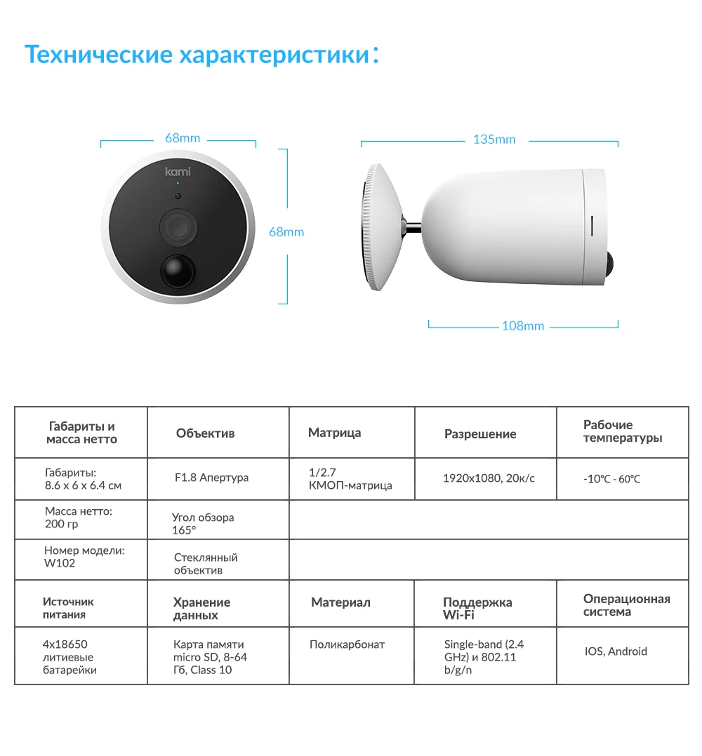 100% Беспроводная камера | Продолжительный срок службы аккумулятора | Пыленепроницаемость со степенью защиты IP-65 | Усовершенствованная система ночного видения 100% беспроводная камера видеонаблюдения Kami Wire-Free отлично подойдет для различных сценариев применения: установите ее внутри помещения, на улице, во дворе или в гараже- отсутствие проводов делает процесс установки камеры удобным и приятным. Полностью портативная, эта камера не требует никаких дополнительных аксессуаров.